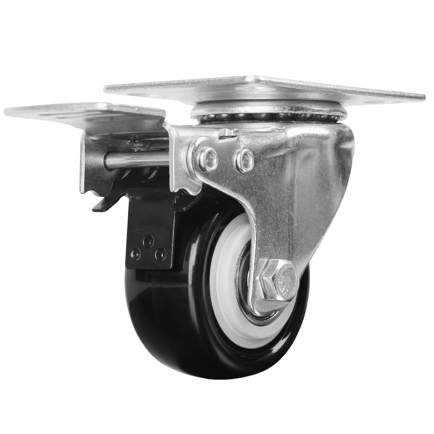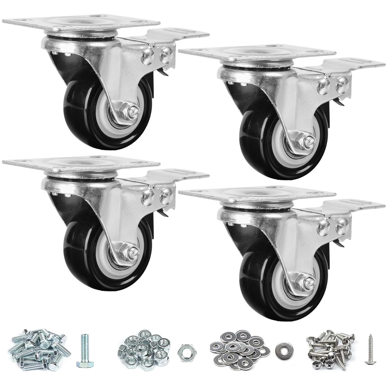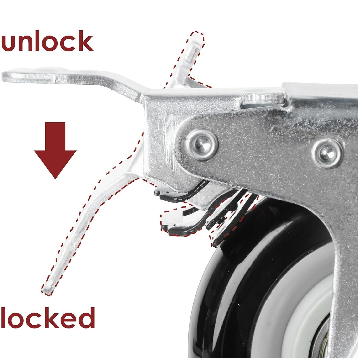 Black PU 2-Inch Caster Wheels - Smooth and Lockable Heavy Duty Set of 4