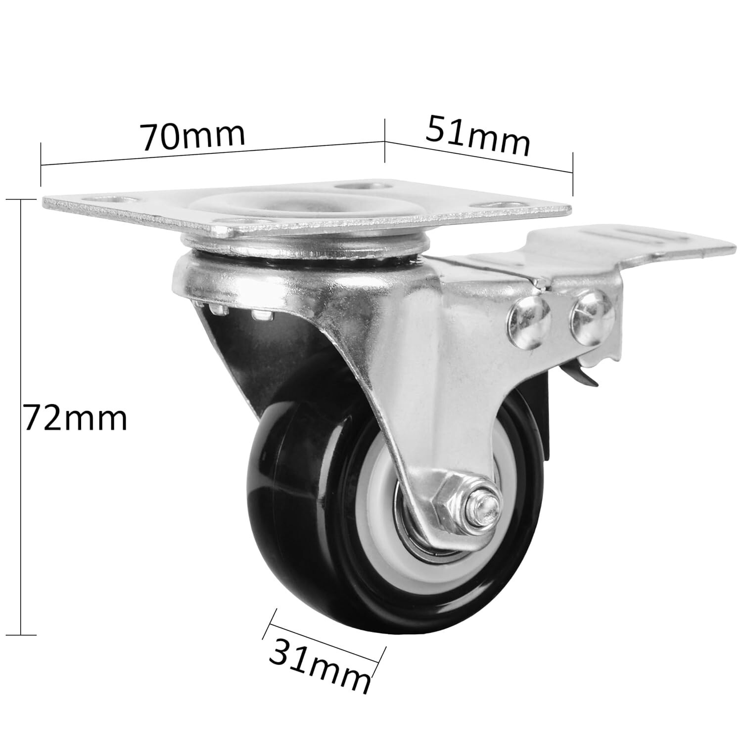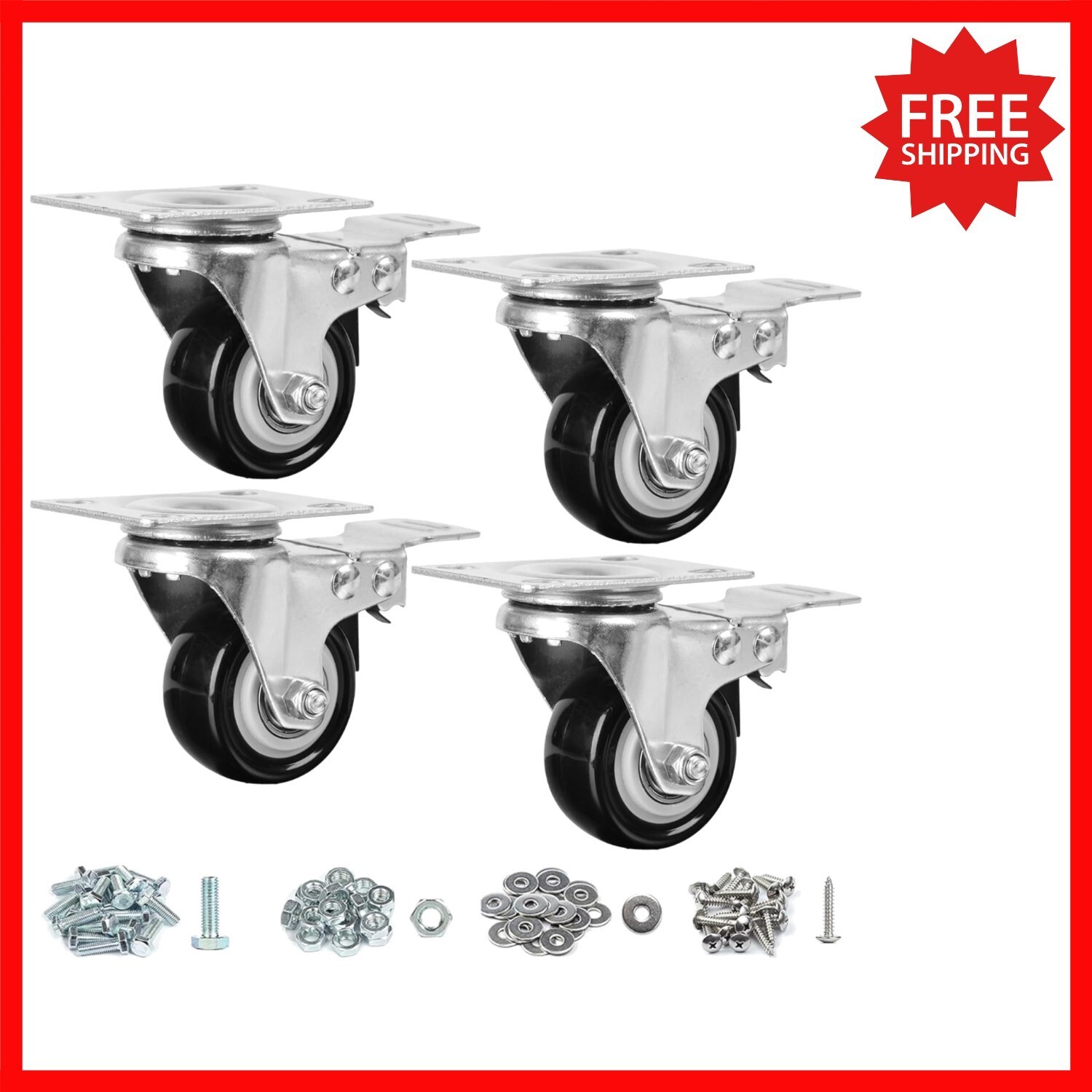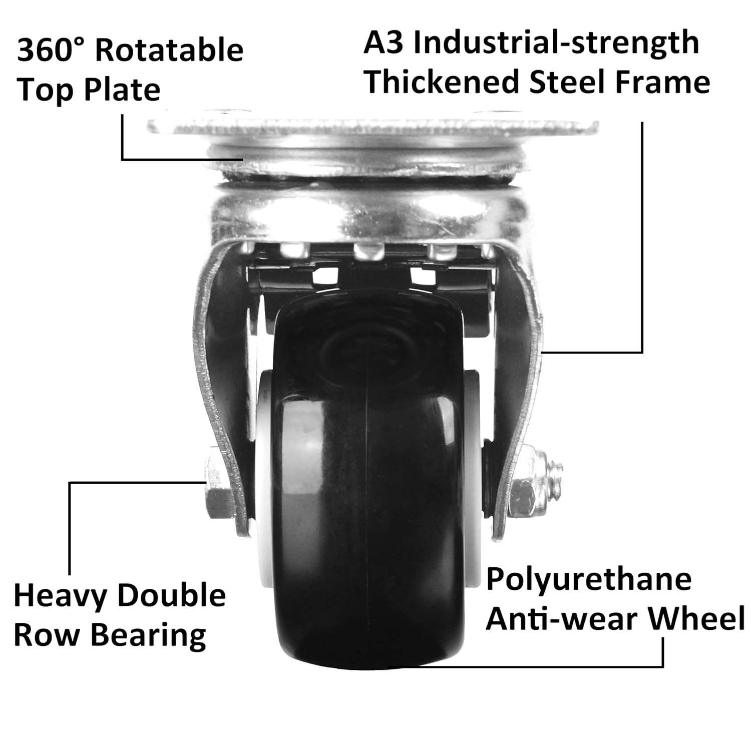 Black PU 2-Inch Caster Wheels - Smooth and Lockable Heavy Duty Set of 4