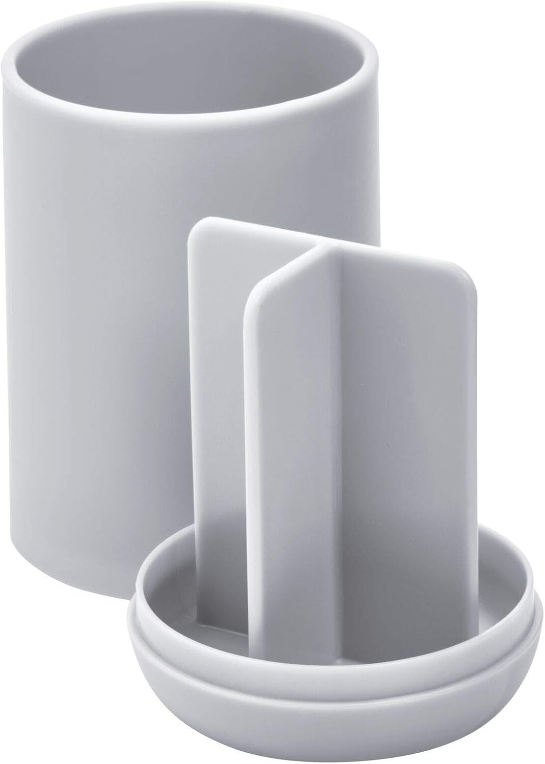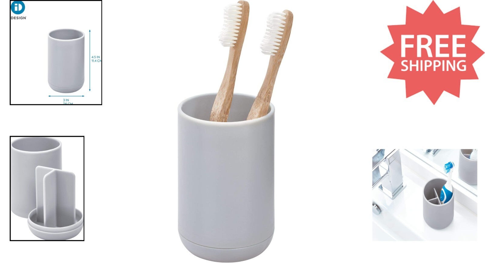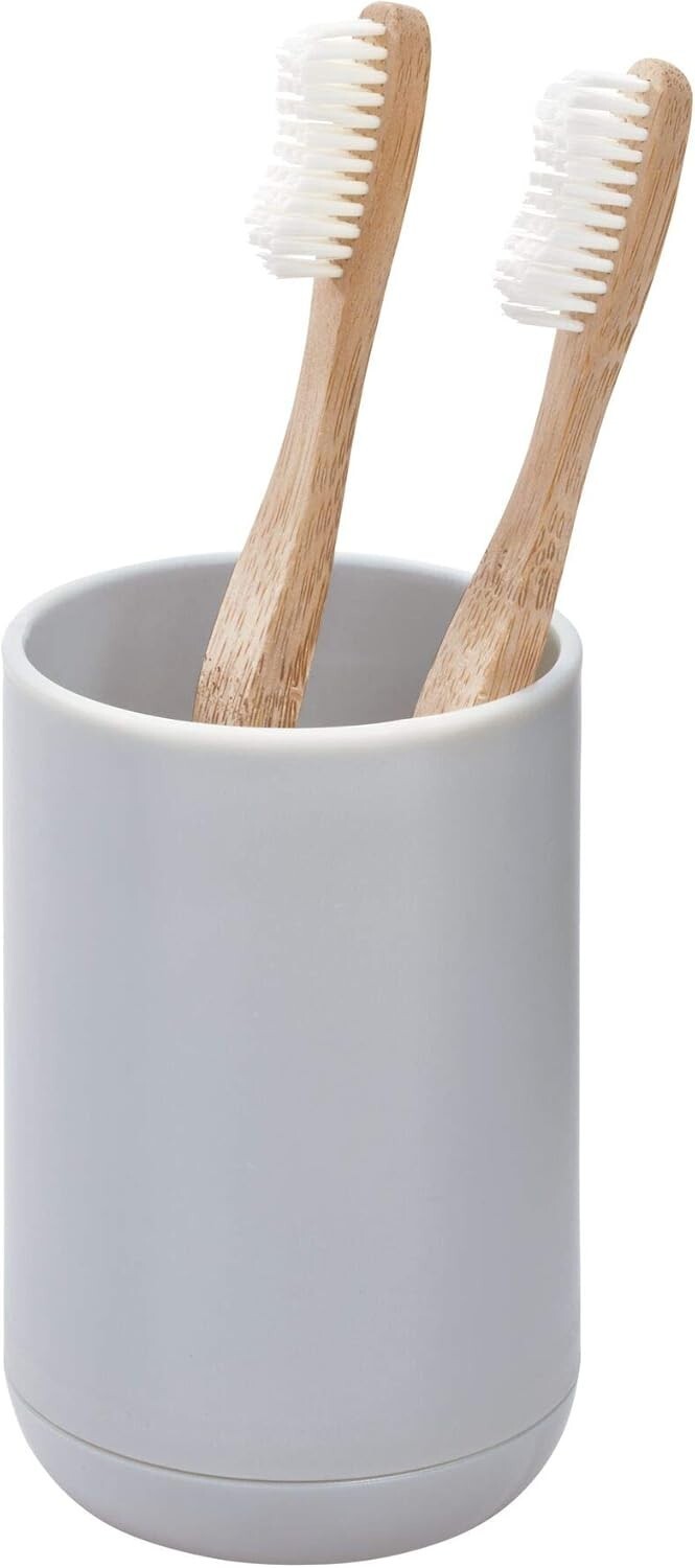 Add a touch of modern elegance to your bathroom with the iDesign Cade Toothbrush Holder. Crafted from durable, BPA-free plastic, this sleek, matte gray organizer features three slots to keep toothbrushes and toothpaste neatly separated and easily accessible. Its compact 3" x 3" x 4.5" design fits comfortably on any counter, accommodating standard and electric toothbrushes alike. The removable outer shell allows for easy cleaning?just wipe with mild soap and water. Perfect for both everyday and kids' bathrooms, this stylish holder combines functionality with contemporary design to enhance your space.