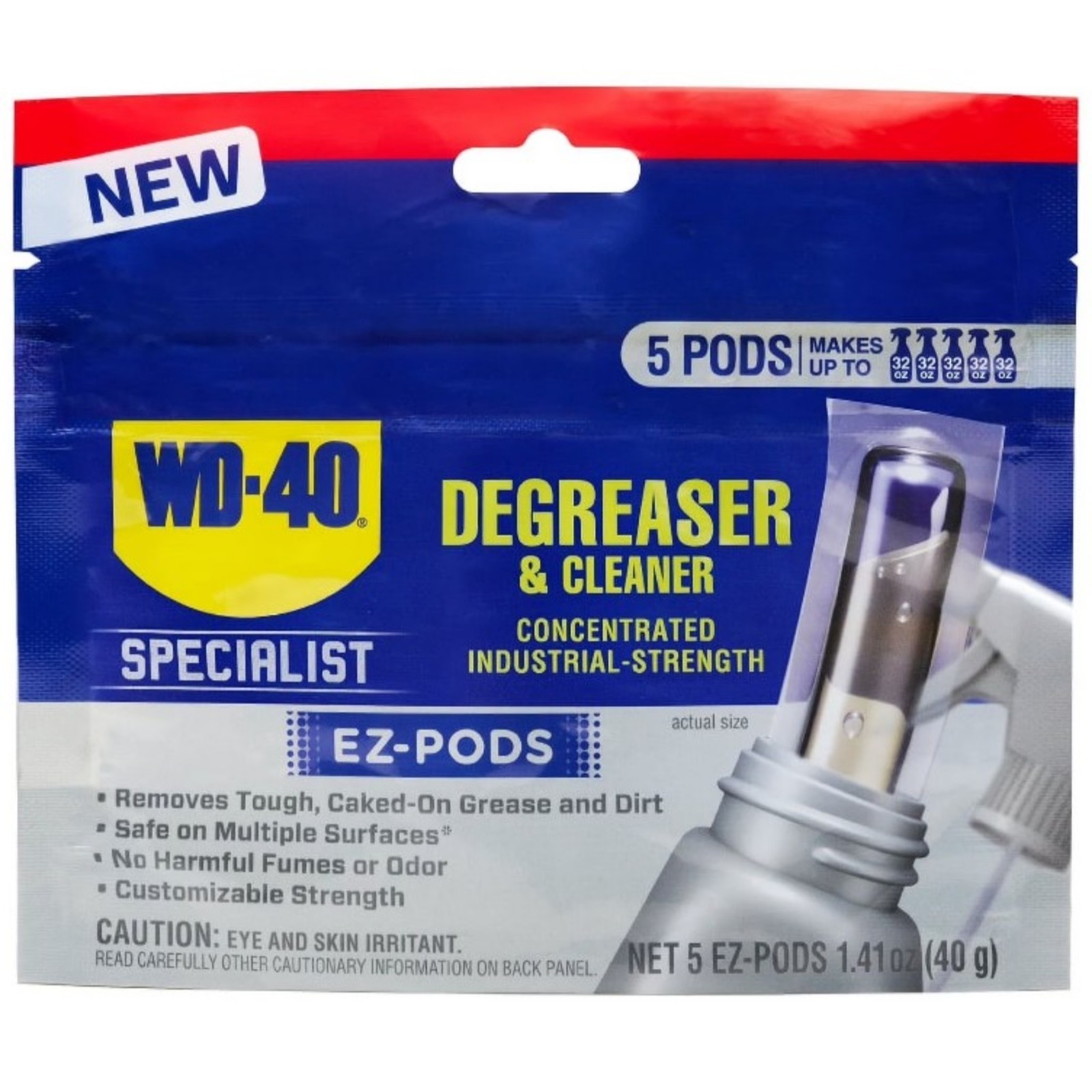 WD-40 Specialist Industrial-Strength Degreaser EZ-Pods offer a powerful, eco-smart way to tackle grease and grime. Each dissolvable pod mixes with water to create a professional-grade degreasing solution?perfect for engines, tools, shop floors, and heavy-duty cleaning tasks. Convenient, compact, and safe on most surfaces.
