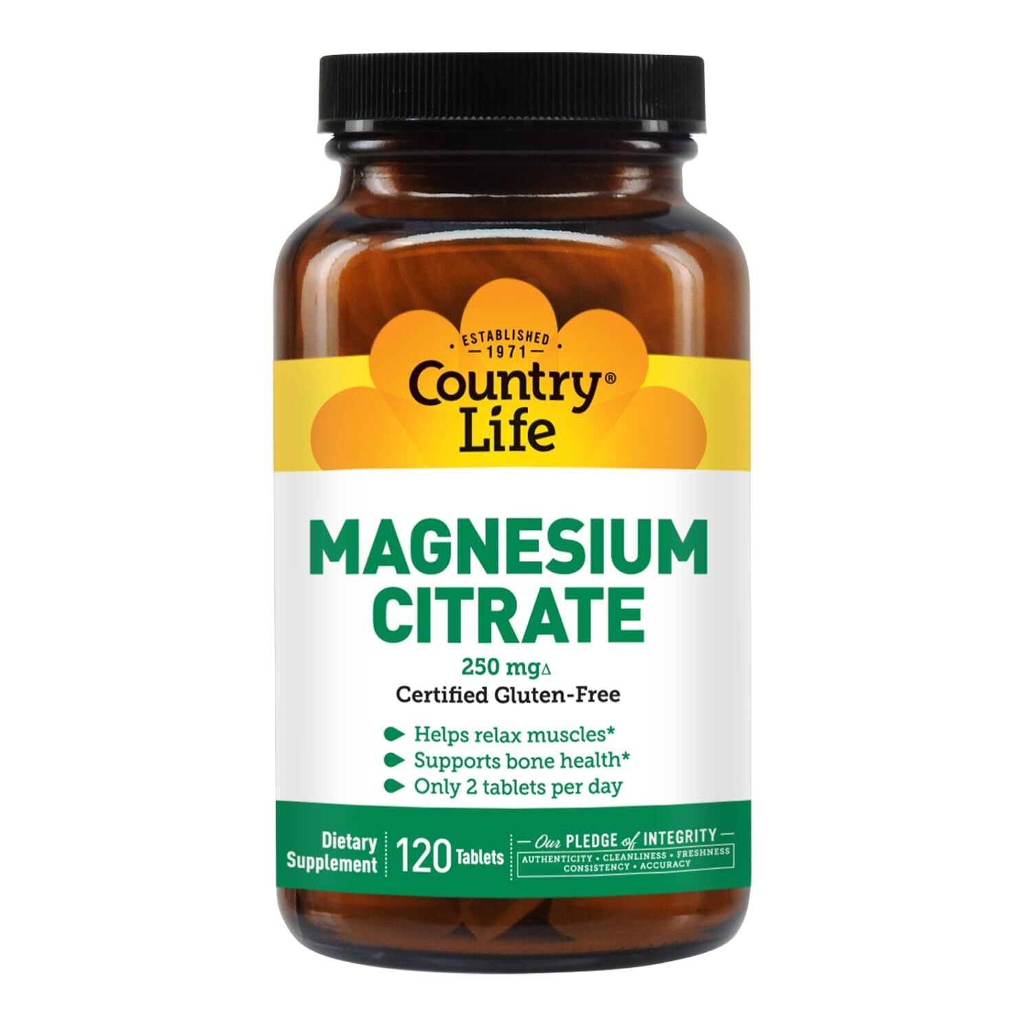 4/27 Country Life Magnesium Citrate 250mg - 120 Tablets - Supports Muscle Nerve Function, Heart Rhythm, Healthy Immune System, Energy Production - Magnesium Complex Supplement