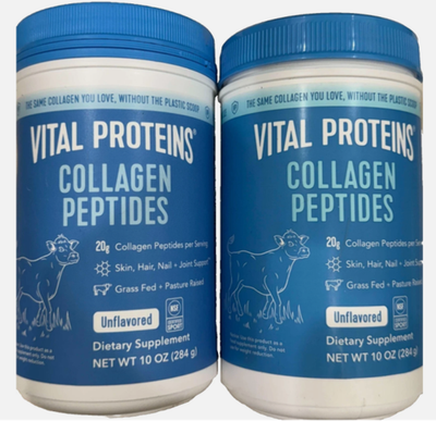2 Pack Expiration Date of 02/19/2030 ? SUPPORTS COLLAGEN PRODUCTION: Formulated with Vitamin C to aid the body's natural collagen synthesis ? SUPPORTS SKIN HYDRATION: Features collagen with hyaluronic acid to improve skin hydration ? HIGH BIOAVAILABILITY: Our Vital Proteins Collagen Peptides Unflavored, sourced from grass-fed bovine, provide rapid absorption and digestion ? EASY TO MIX: This hydrolyzed collagen for women and men dissolves easily in hot or cold beverages, seamlessly integrating into your coffee, tea, or smoothie routine ? DIET-FRIENDLY FORMULA: Incorporating collagen powder, it's Paleo and Whole30 compliant, made without dairy or gluten, and 0g sugar per serving, suiting a variety of dietary habits