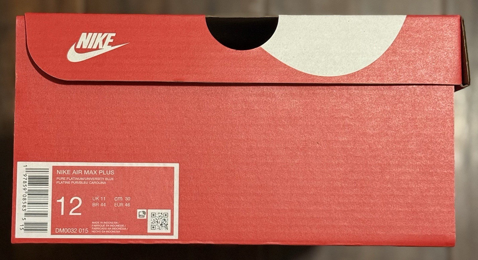 NEW Nike Air Max Plus Pure Platinum University Blue DM0032-015 Men’s Size 12