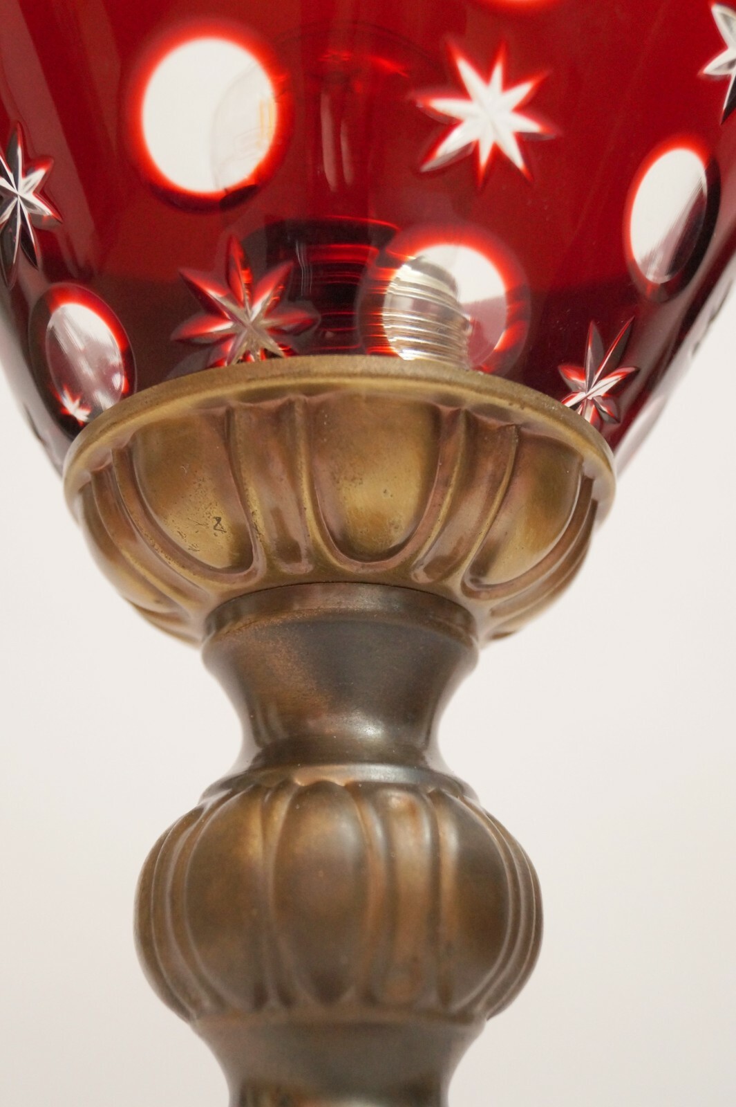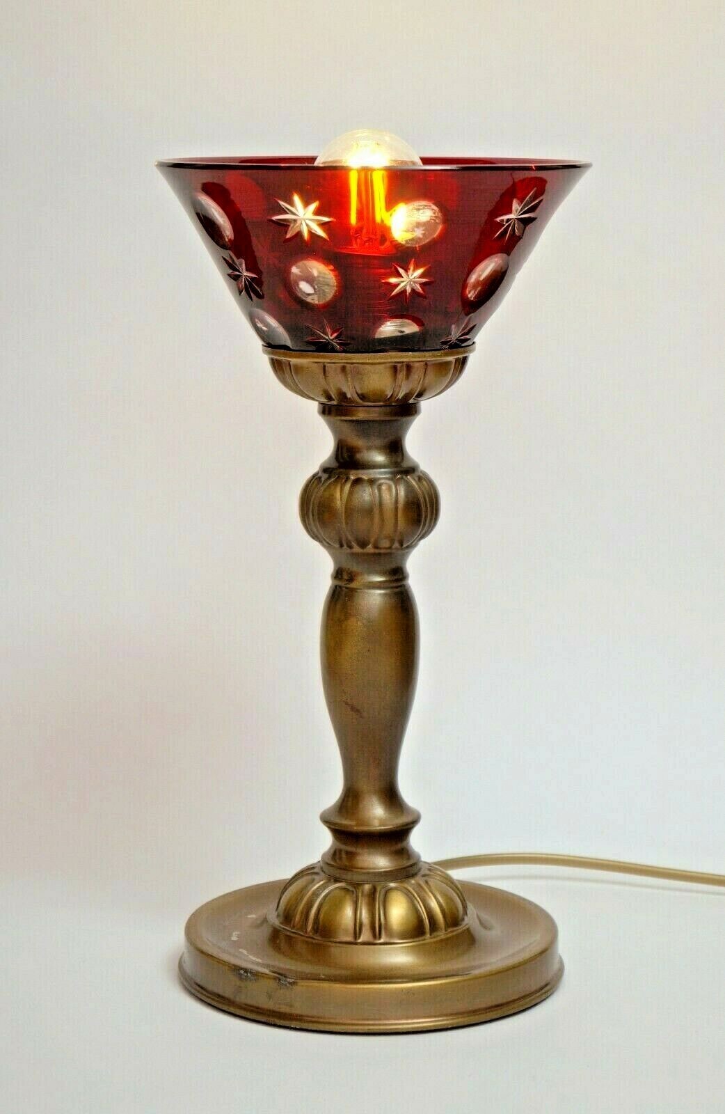 Art Nouveau Lampe de Table de Chevet Cuivre Nachtmann Verre Cristal Pièce Unique