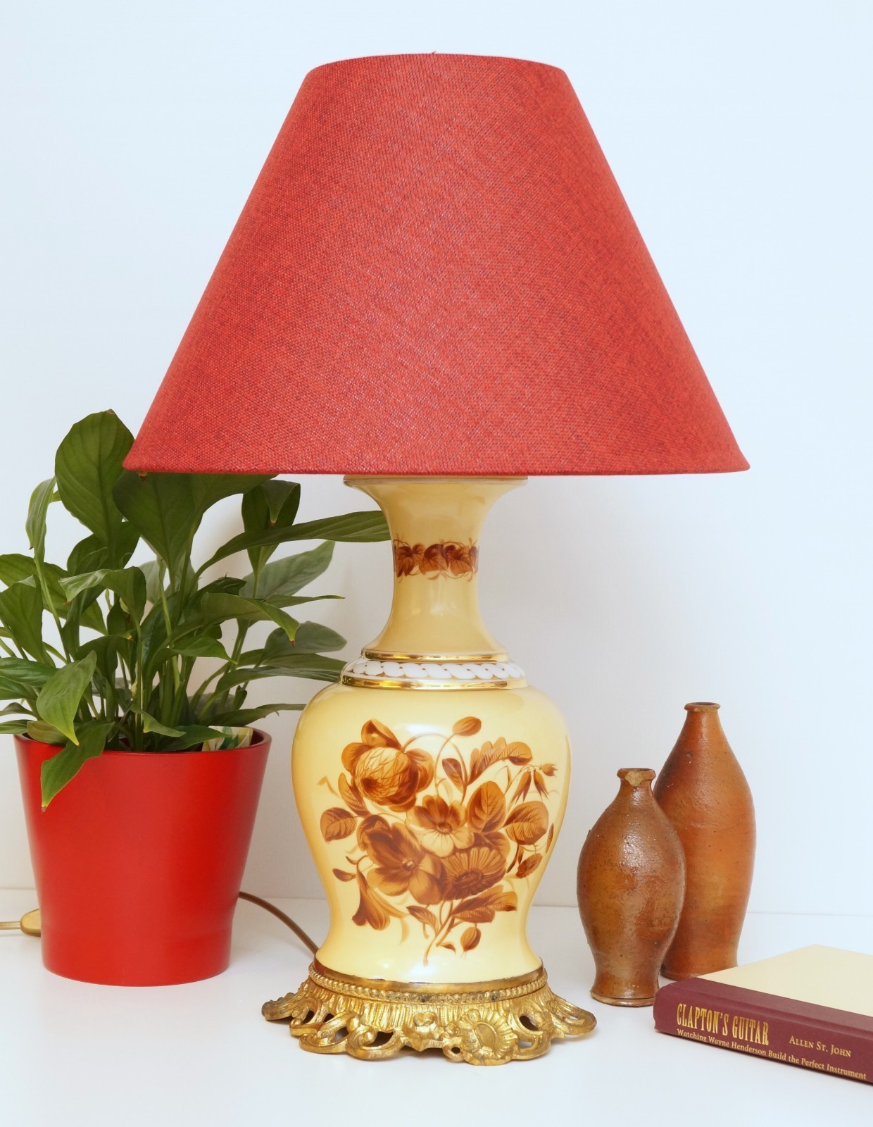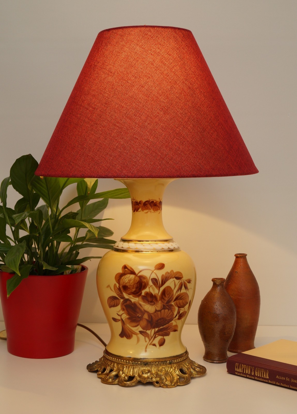 Vers 1910, equipement en ceramique, nouveau ecran de tissu, hauteur totale d'env. 53 cm, Nouvelles electriques