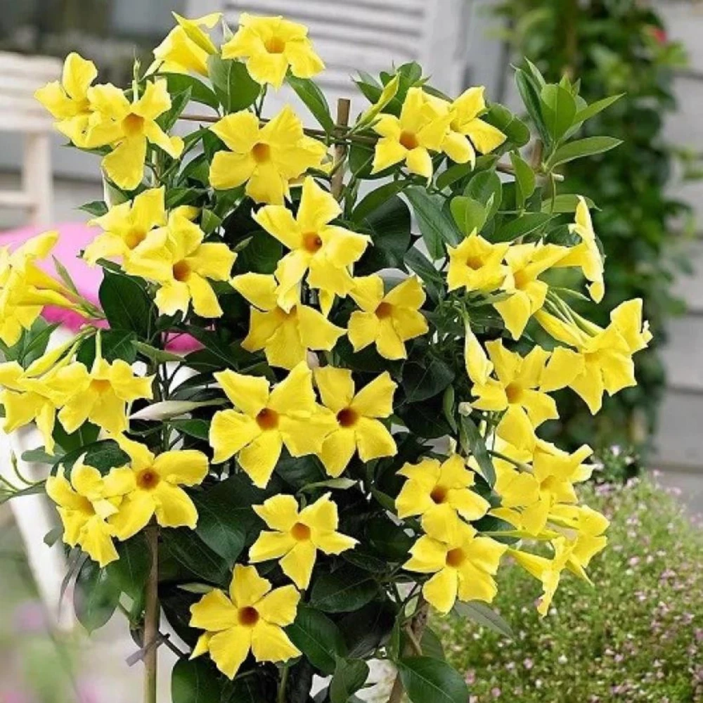 About: Meet Mandevilla Yellow 4In Starter Plant Live Ship No Pot Bright Yellow Blooms, a garden?ready standout that blends reliable vigor with eye?catching appeal. Highlights: ? Low?fuss routine: steady light, even moisture, free?draining media. ? Packed for the current season and sealed for freshness. ? Predictable habit and color across a range of climates. ? Beginner friendly yet satisfying for expert collectors. ? Pollinator friendly?welcomes bees, butterflies, and beneficials. ? Ideal for cutting gardens, edible borders, or focal accents. Product Information: ? Approximate quantity: Varies seeds per packet (may vary). ? Growth habit: heat?tolerant; dependable performance with basic care. ? Companions: pair with herbs and pollinator favorites for extra impact. ? Variety: Mandevilla Yellow 4In Starter Plant Live Ship No Pot Bright Yellow Blooms ? packed fresh in protective packaging. ? Suggested sites: sunny borders, bright patios, or greenhouse benches. Growing Tips: ? Sow thinly; cover as species requires, then mist to settle the media. ? Harden off gradually before outdoor transplanting to prevent shock. ? Space appropriately to promote airflow and reduce disease pressure. ? Feed lightly with a balanced fertilizer once true leaves emerge. ? Mulch to conserve moisture and suppress weeds during peak heat. ? Use a well?aerated, peat?free mix and pre?moisten evenly before sowing. ? Provide strong light and warm temperatures for prompt sprouting.