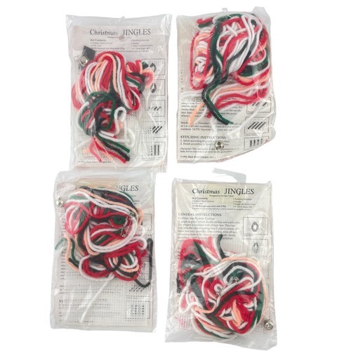 This lot of 4 Christmas plastic canvas needlepoint kits is perfect for those who love to craft during the holiday season. Each kit features a different design - an angel, snowman, ornament and elf. The kits include all the materials you need to complete each project, including plastic canvas, yarn, and instructions.