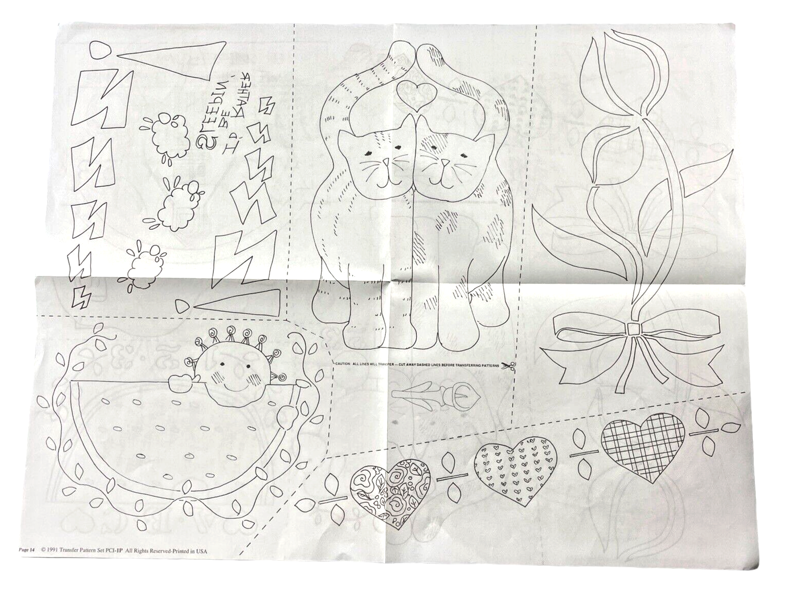 FC&A Iron On Transfer Pattern Cat Heart Tails Bouquet Watermelon Lambs Jumping