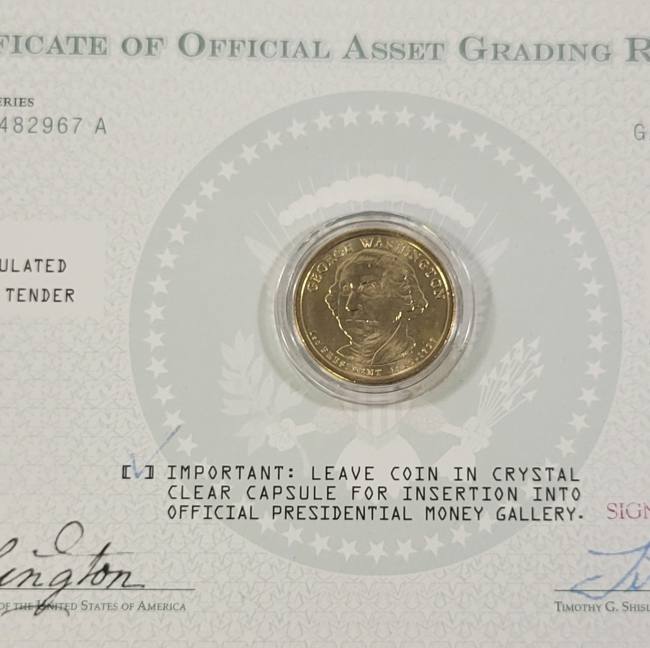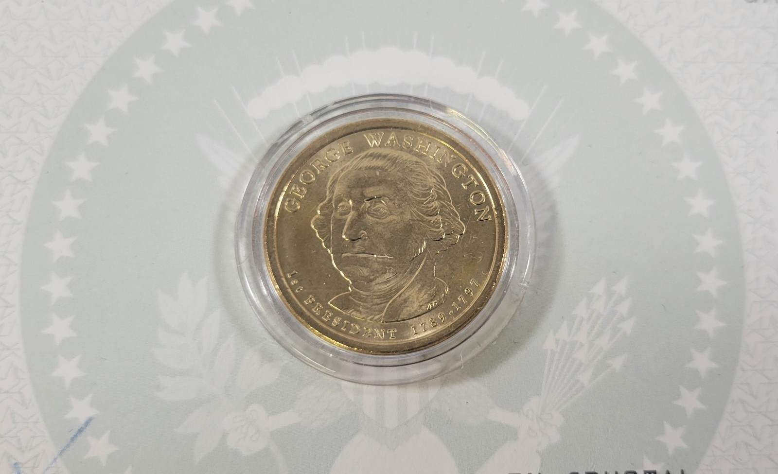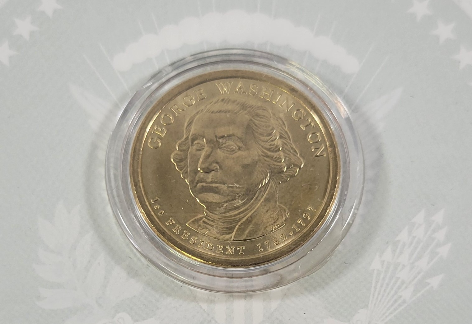 Coin is uncirculated collectible George Washington dollar from 2007.