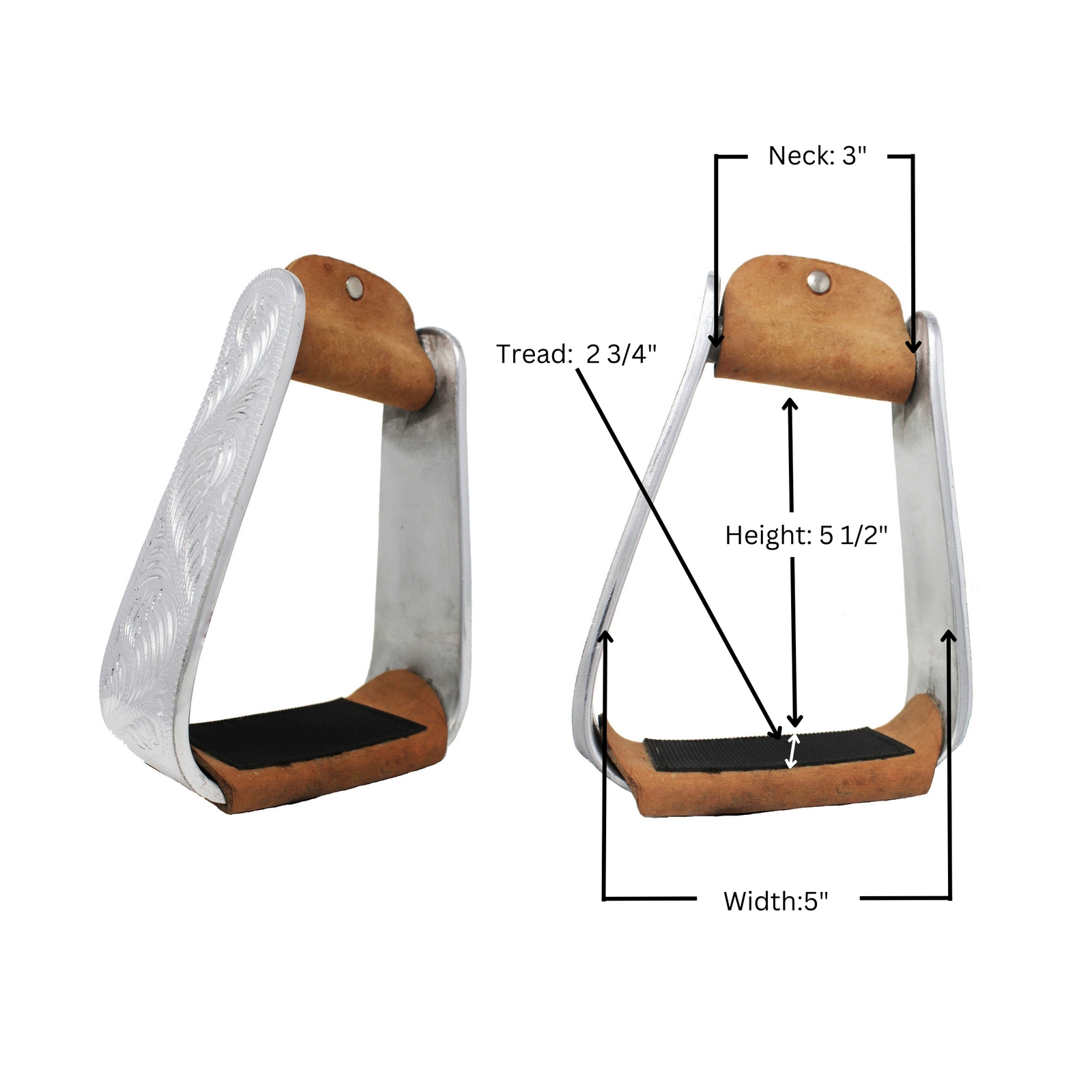 Horse Saddle Stirrups Western Saddle Engraved Aluminum Angled Slanted Bell 51188