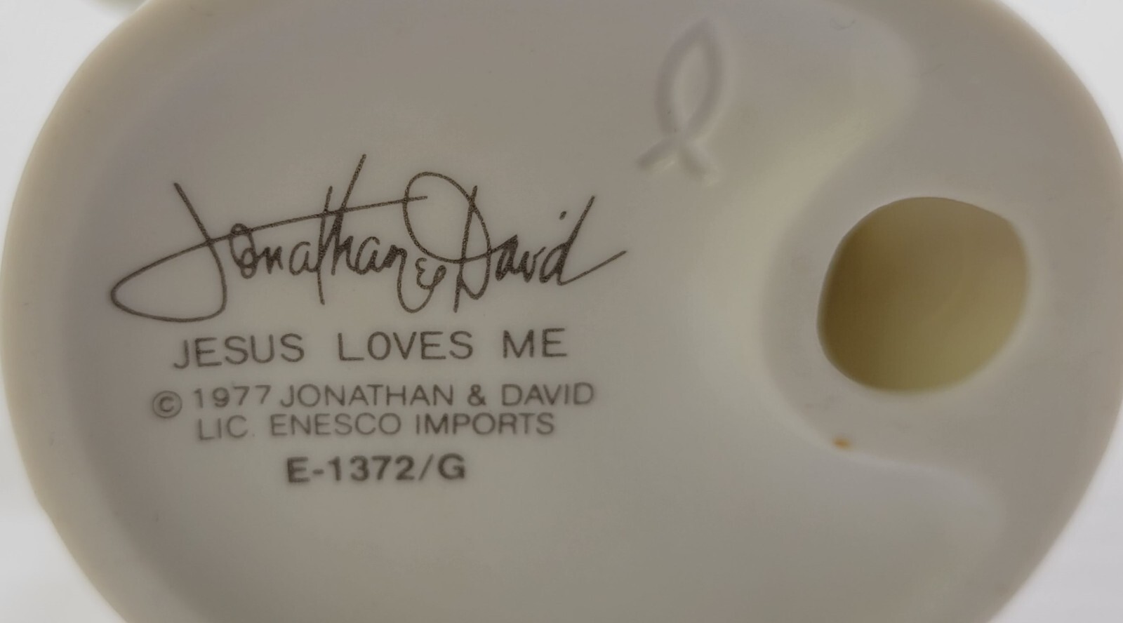 *R16) Precious Moments 1977 Jonathan & David "Jesus Loves Me" Figurine