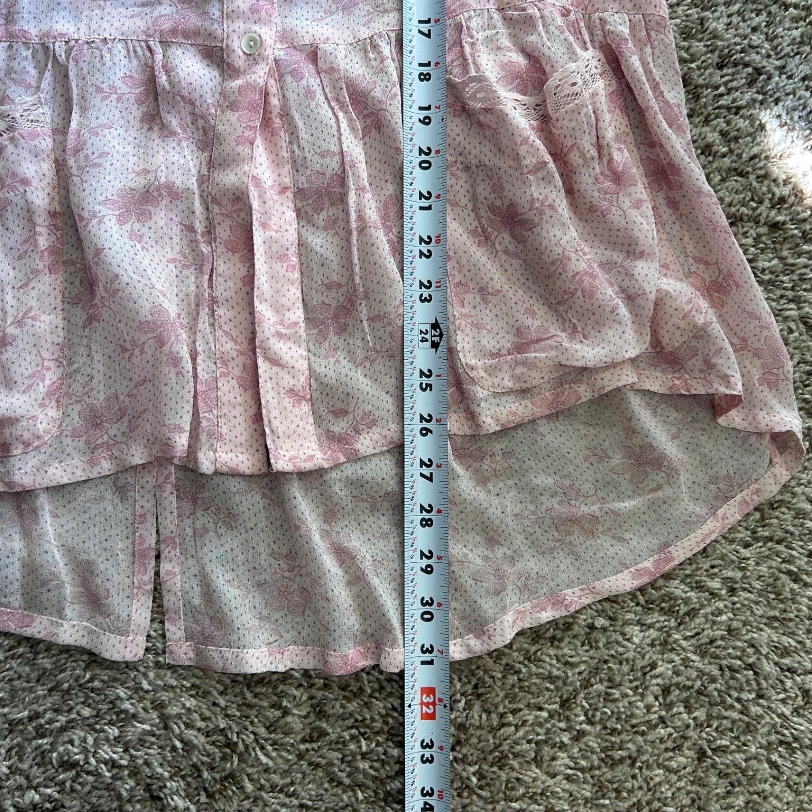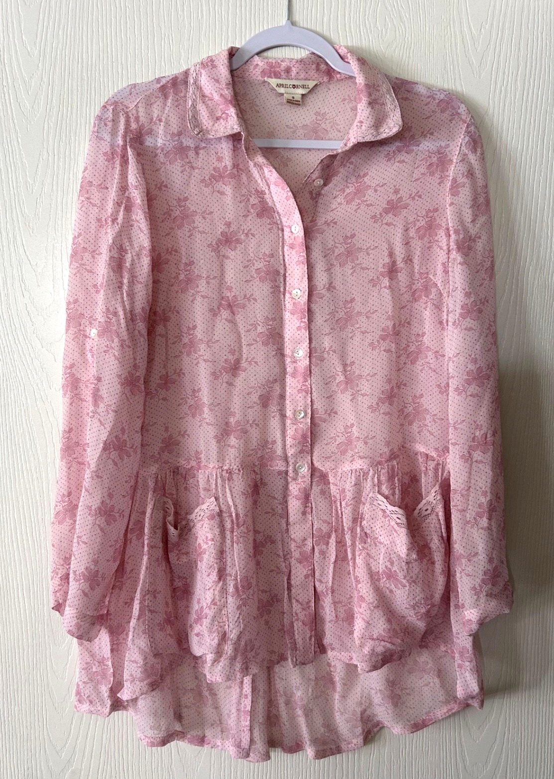 April Cornell pink sheer Aimee blouse tunic oversized floral cottage fairy Small