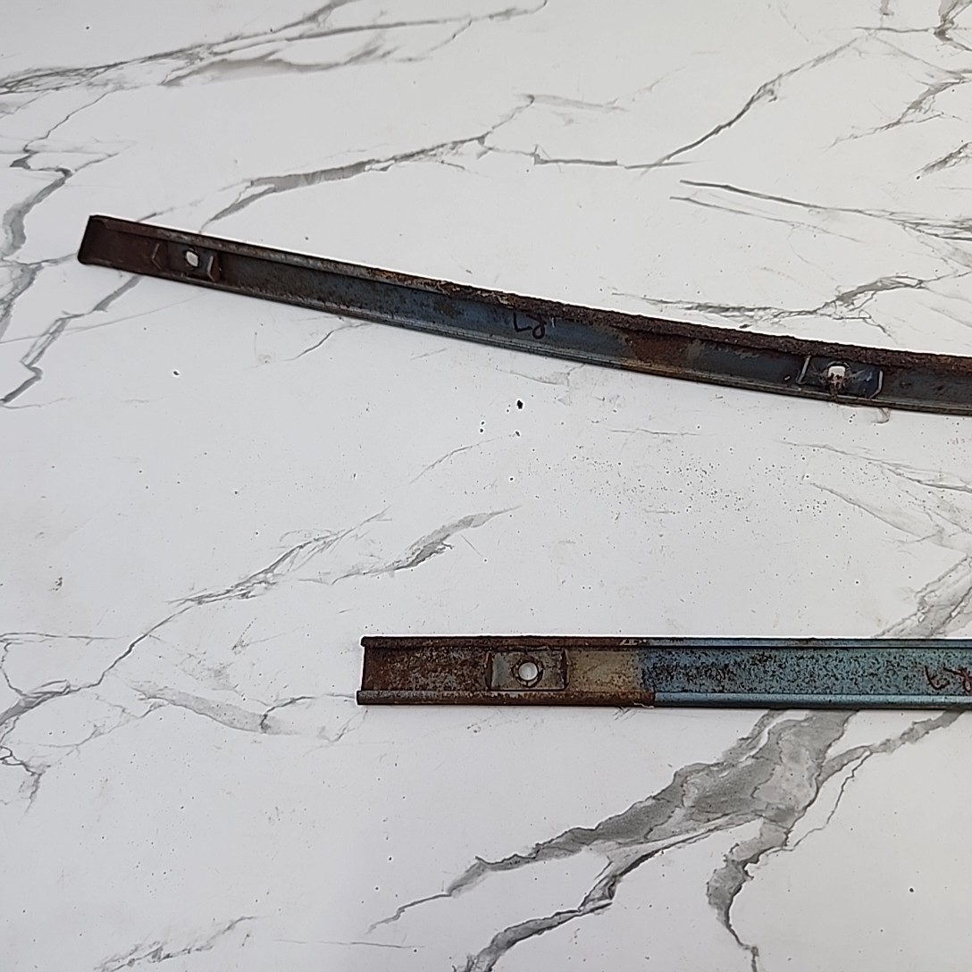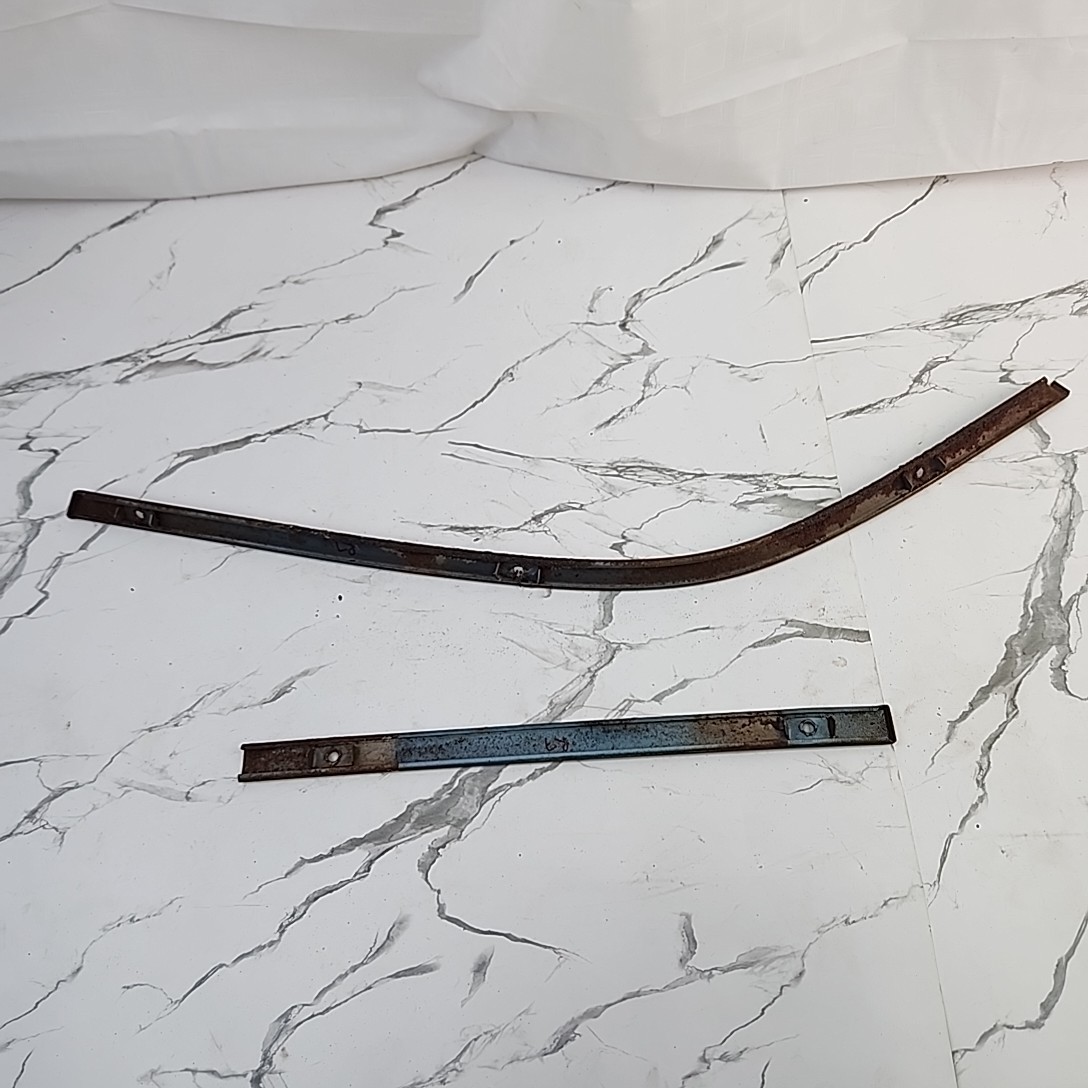 Exact item set is shown. This is being sold for repair / parts / as is. These mount around the rear quarter window on the inside. Originally painted blue, but most of the paint has rusted or worn off. Straight piece approximately 12 inches long, curved piece approximately 21.5 inches long. Made in USA. Please review our business policies in our store for information regarding returns, shipping and warranties.
