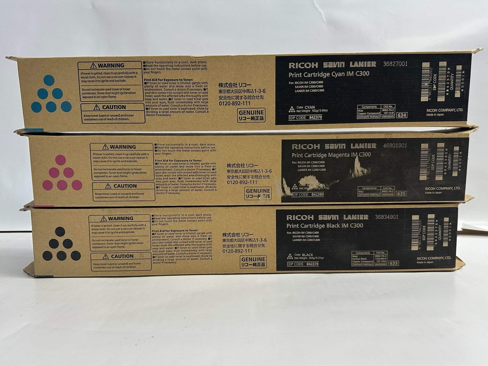 3 New Genuine Ricoh IM C300, C400 CMK Toners 842378,842379,842380 (No Yellow)