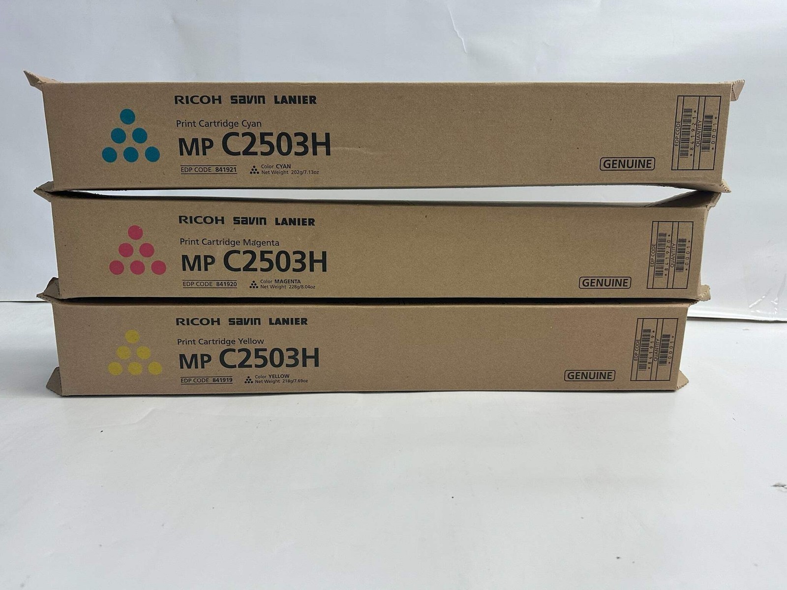 3 Genuine Ricoh MP C2503H,C2003,C2004 CMY Toners 841919,84120,84121 (No Black)