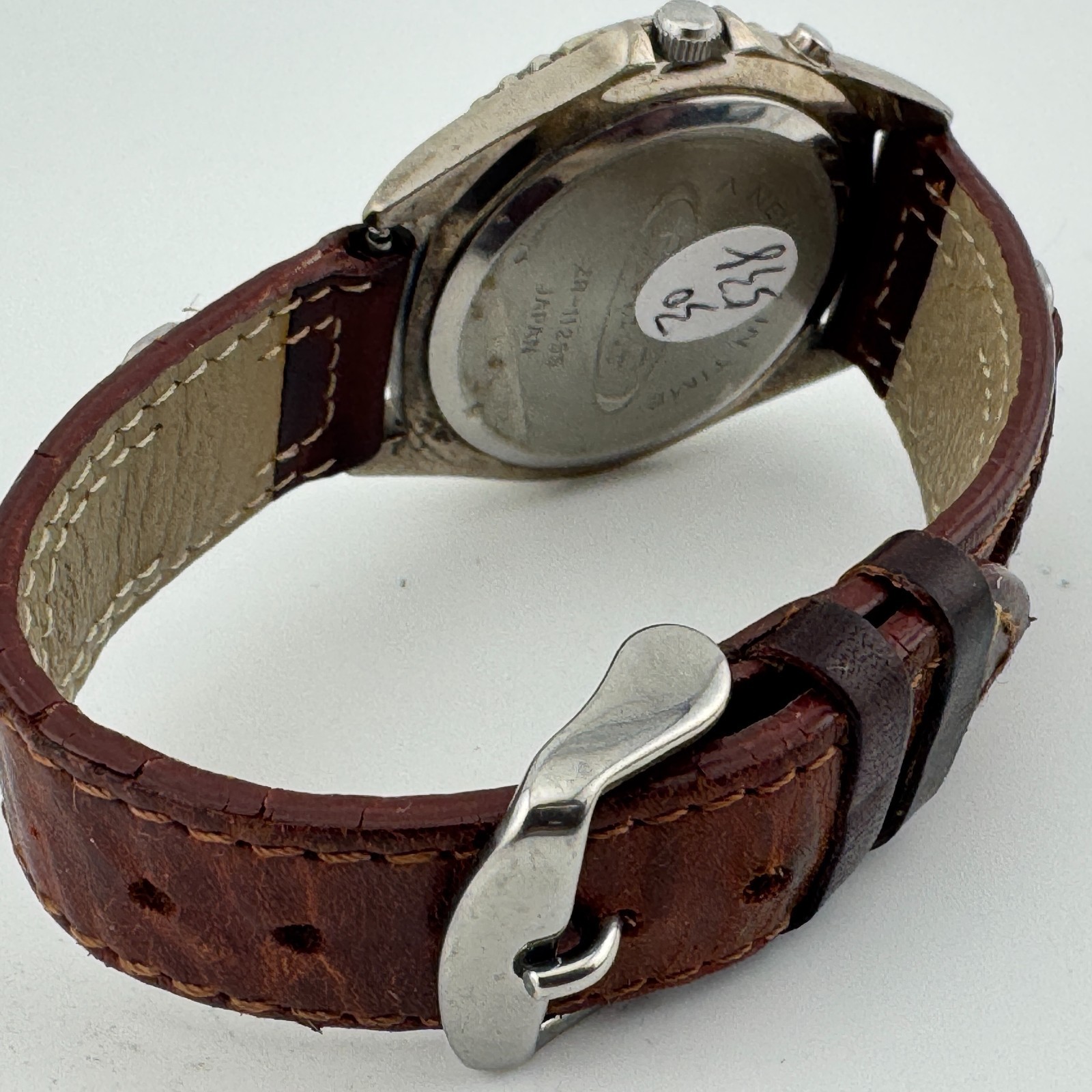 Relic Quartz Watch Men Silver Leather Rotating Bezel Date Backlight New Battery