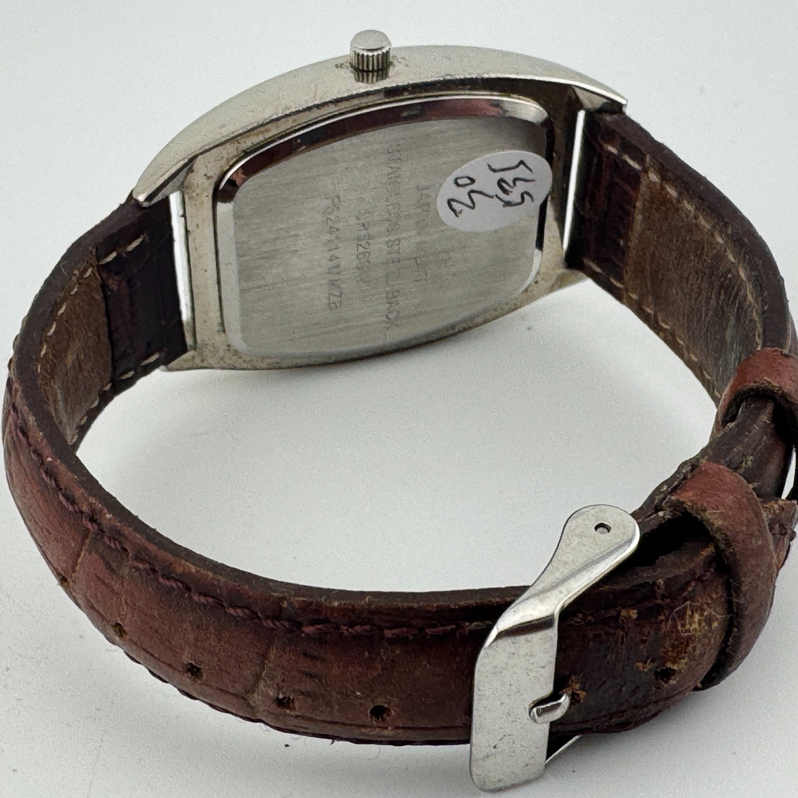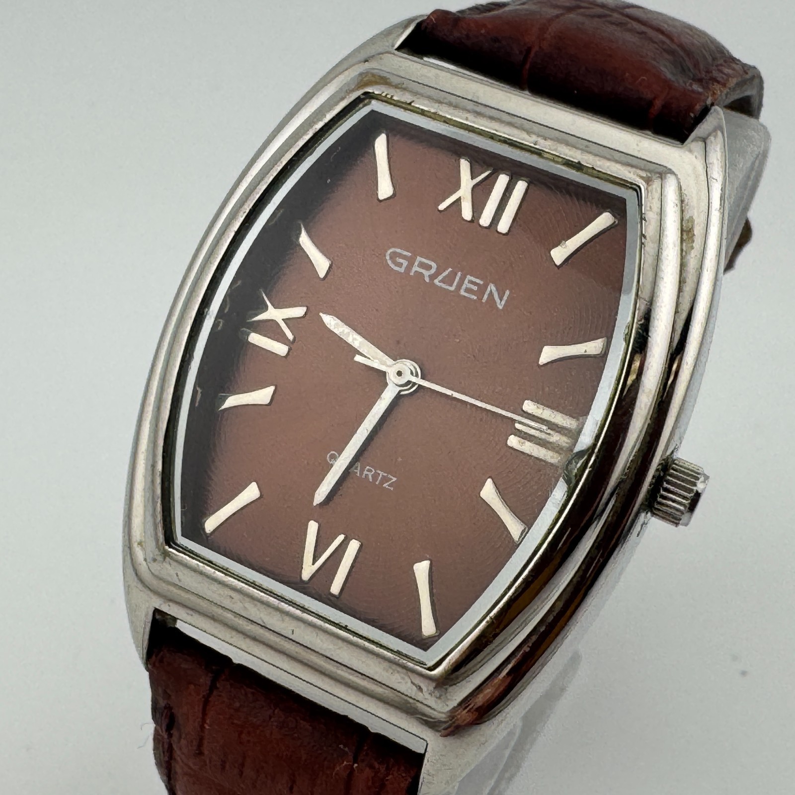 Gruen Quartz Watch Men Silver Barrel Brown and 50 similar items