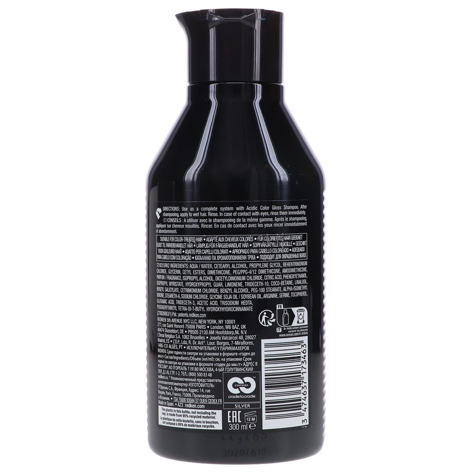 After shampooing with Redken Acidic Color Gloss Shampoo, apply to wet hair. Leave on for 1?2 minutes, then rinse thoroughly. For optimal results, use as part of the complete Acidic Color Gloss system.