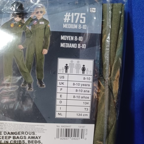 Get ready for Halloween with this Top Gun Maverick kids costume! Perfect for boys and girls aged 8-10, this aviation costume features a green flight suit and a stylish suit design. The costume is made by Paramount, ensuring high quality and authenticity.