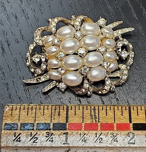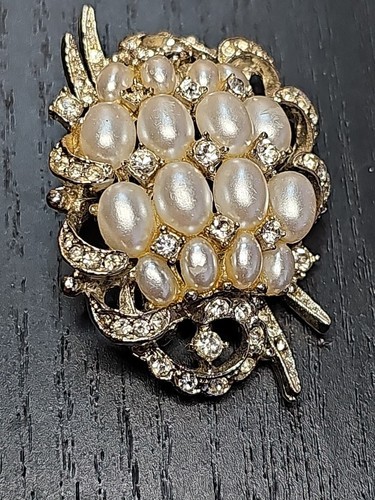 Vintage Art Arthur Pepper Faux Pearl Rhinestone Cluster Brooch Art Deco