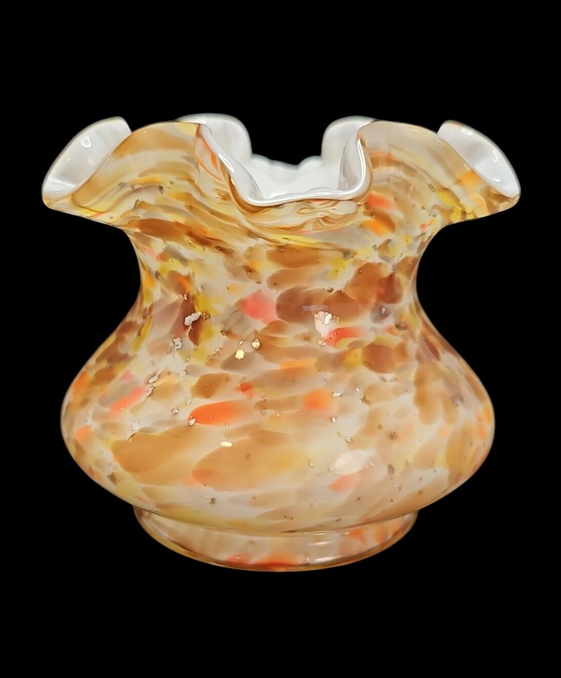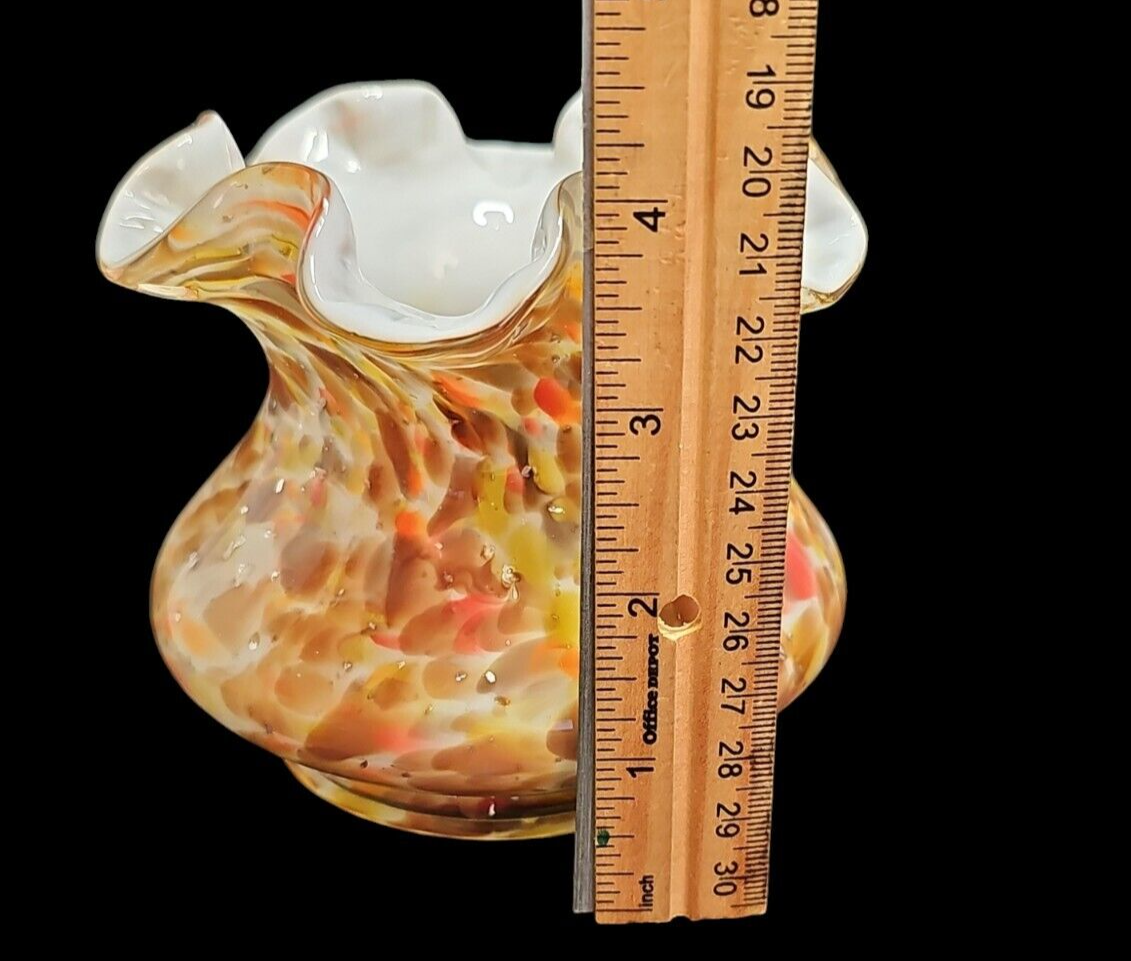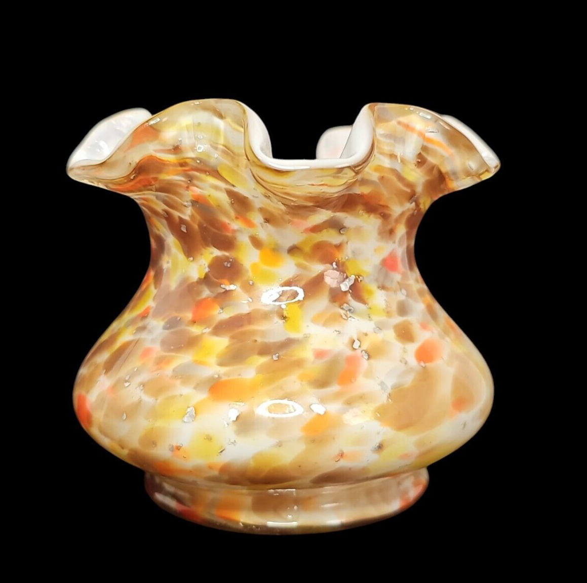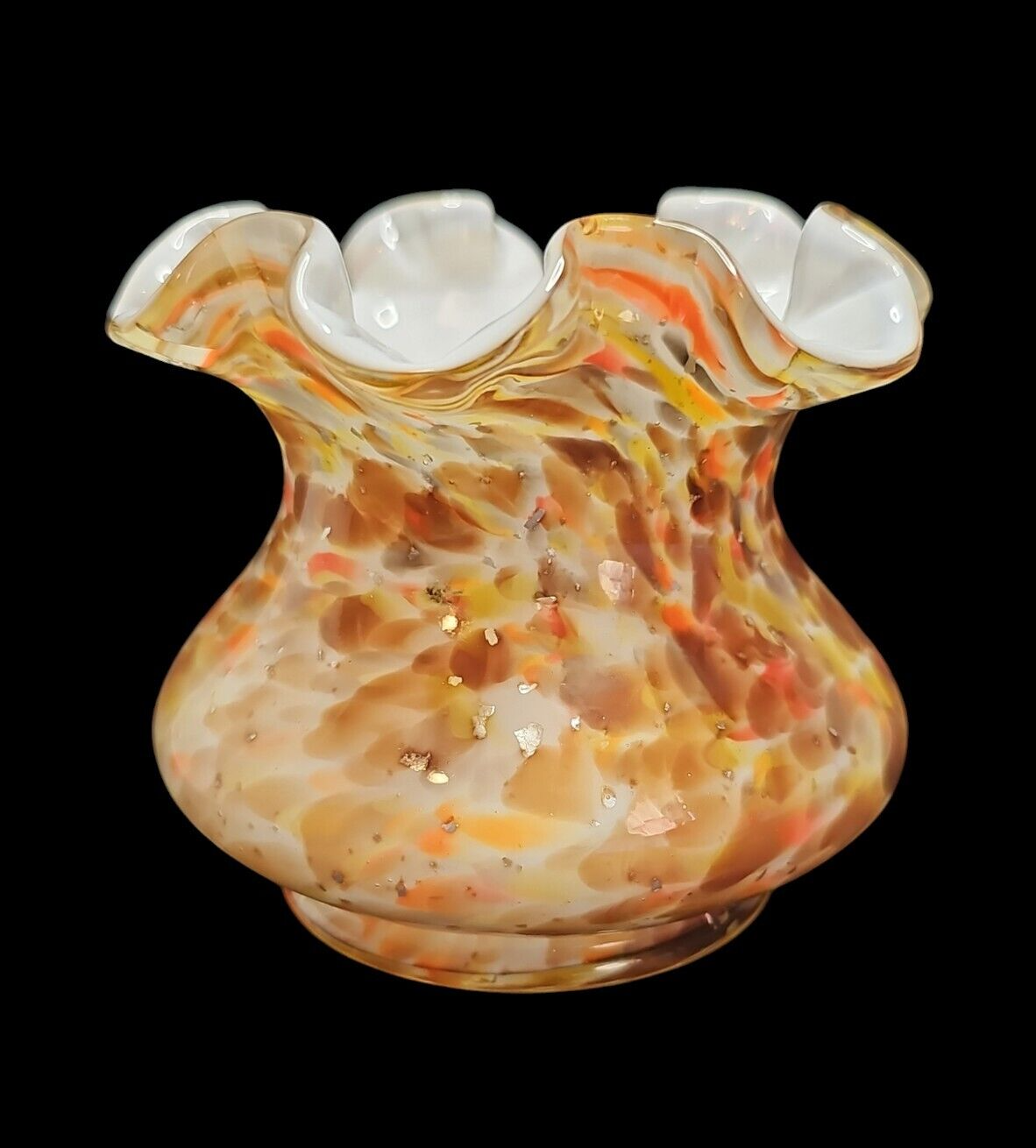 Vintage Fenton Cased Art Glass Vase Autumn Orange Vasa Murrhina Vase 4" No 6454
