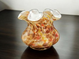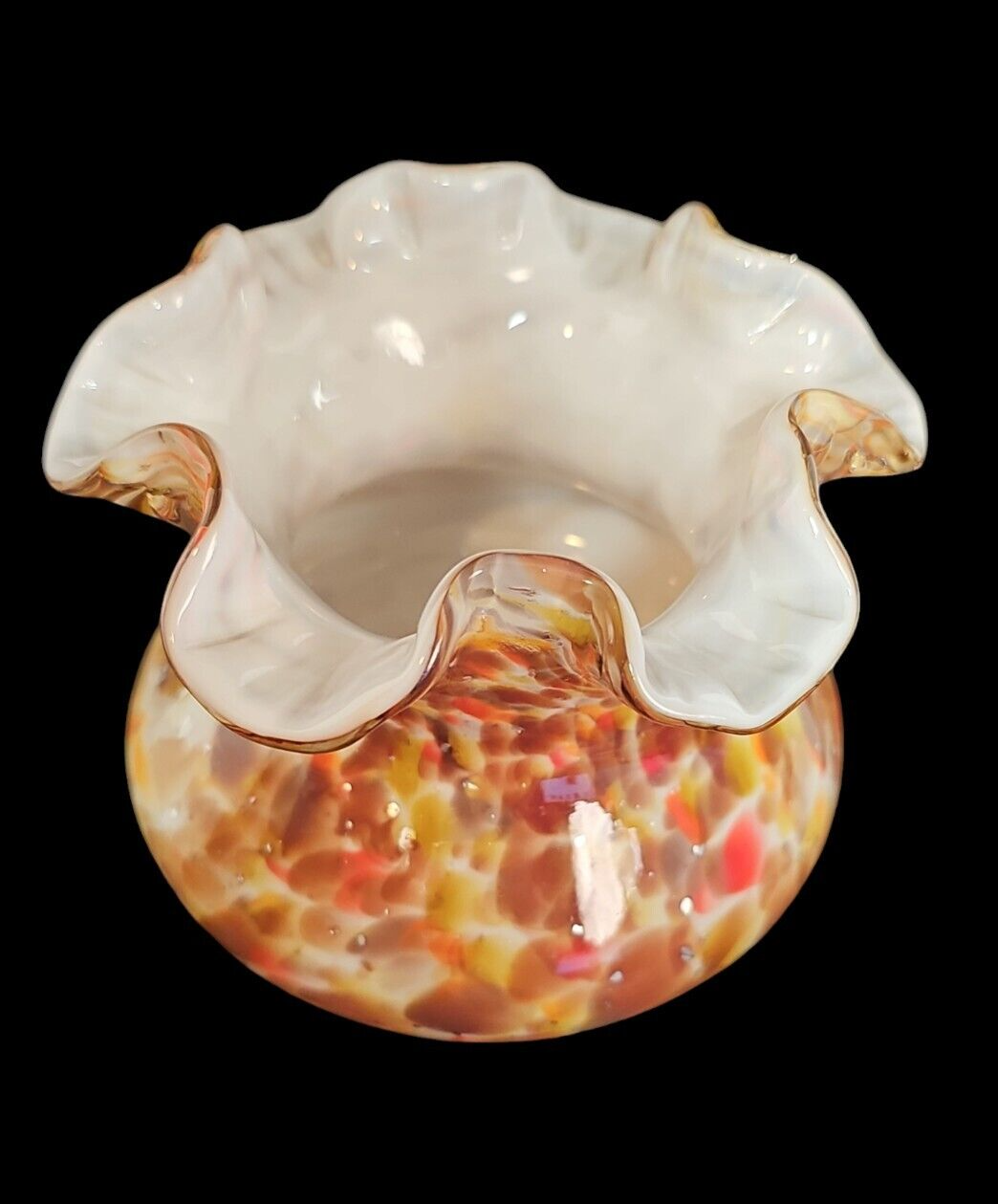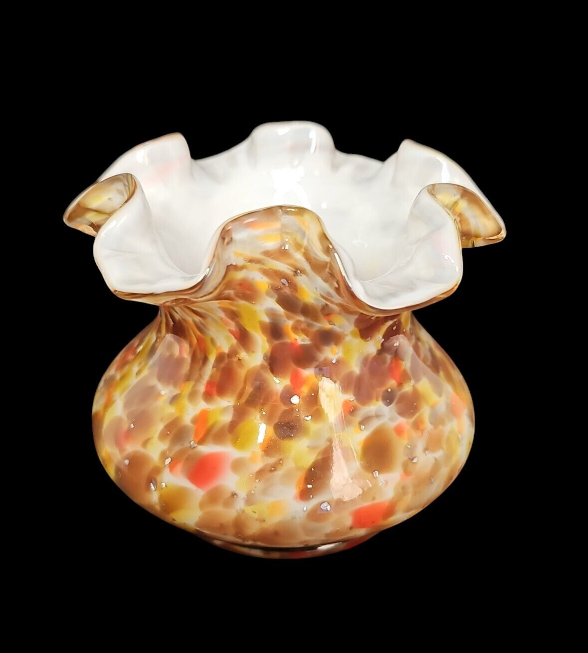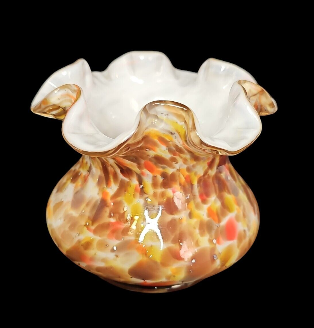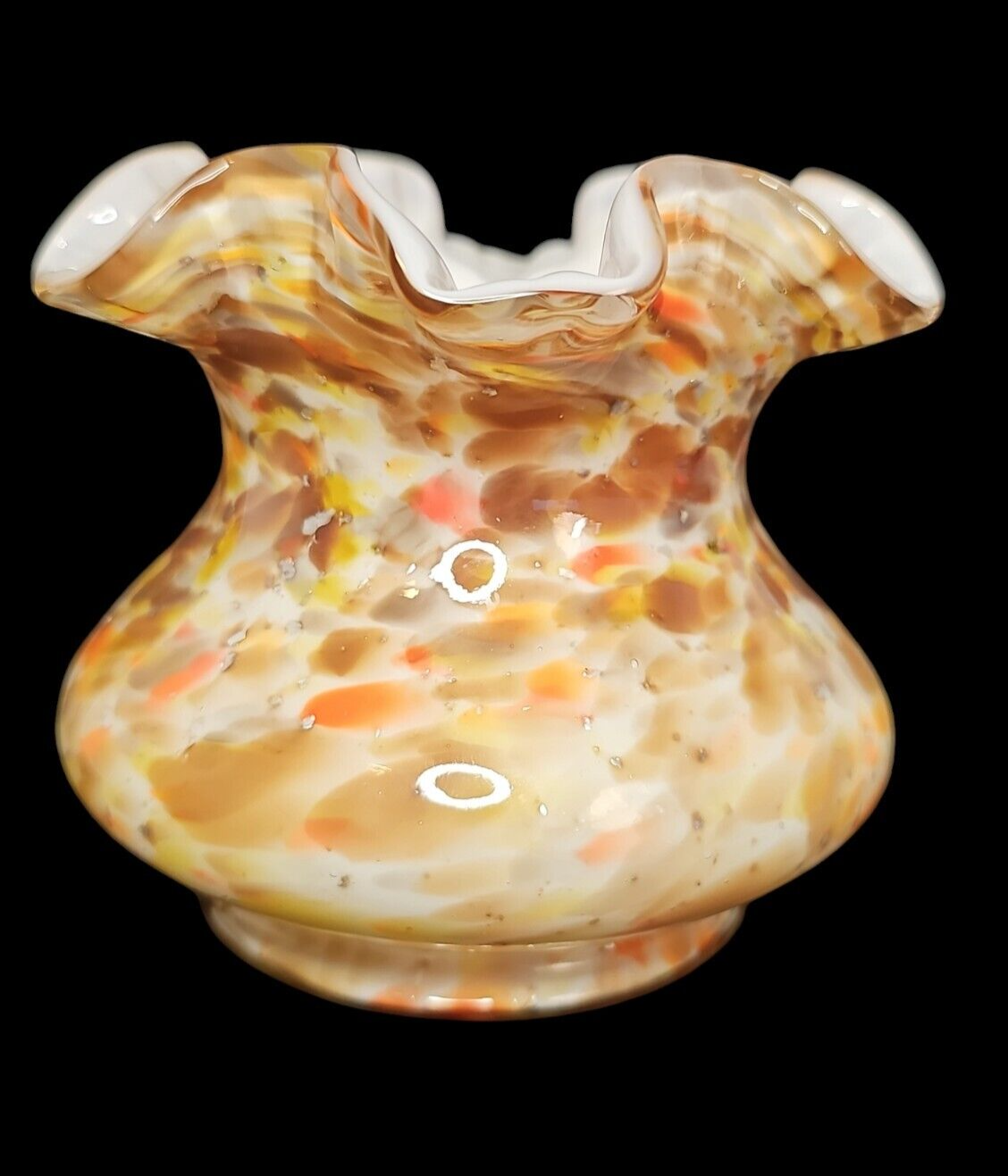 Vintage Fenton Cased Art Glass Vase Autumn Orange Vasa Murrhina Vase 4" No 6454