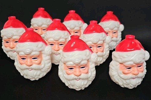 Vintage Christmas Santa Claud Head 9 Blow Mold String Light Covers