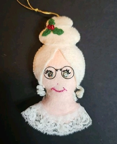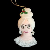 Vintage Handmade Mrs Claus Felt Jeweled Sequined Christmas Ornament Lace Holy