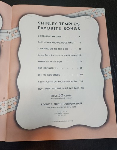 Vintage 1935 Shirley Temple's Favorite Songs and 50 similar items
