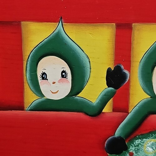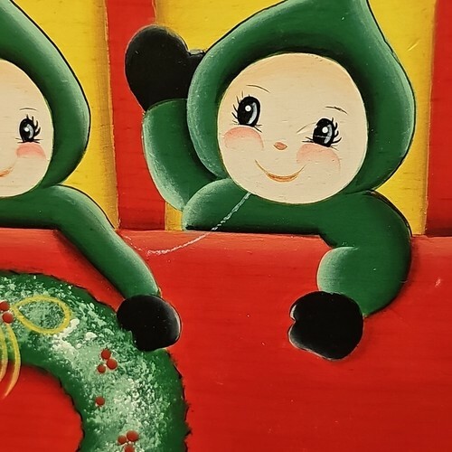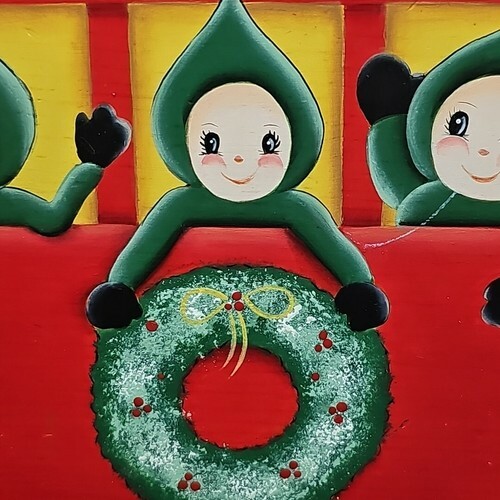 VTG Hand Painted Christmas Train Caboose Pixies Folk Art Design by Marie Cole