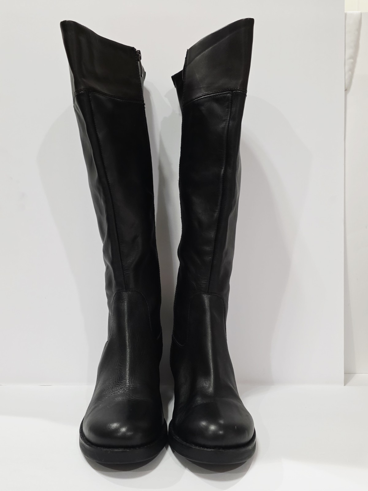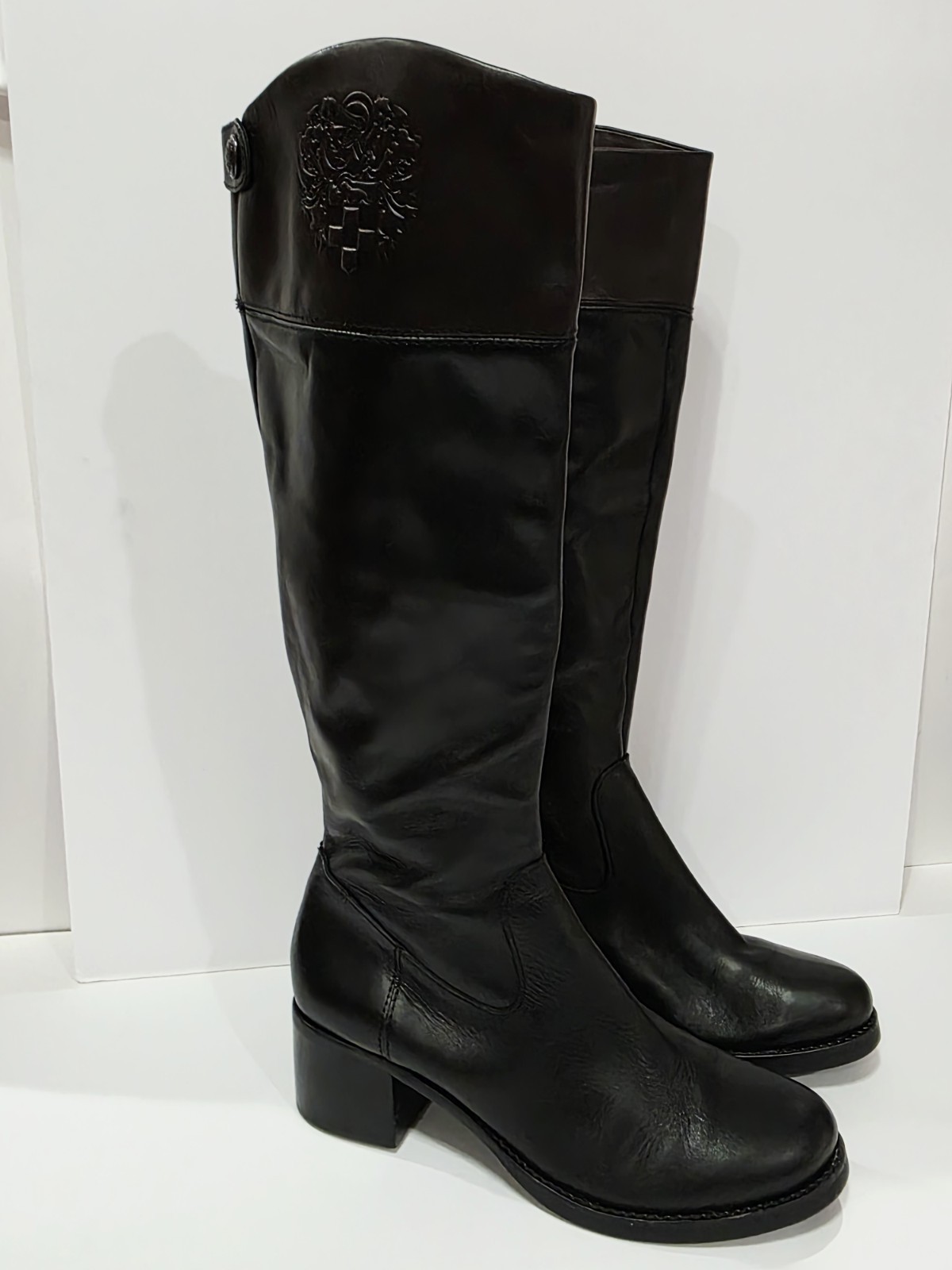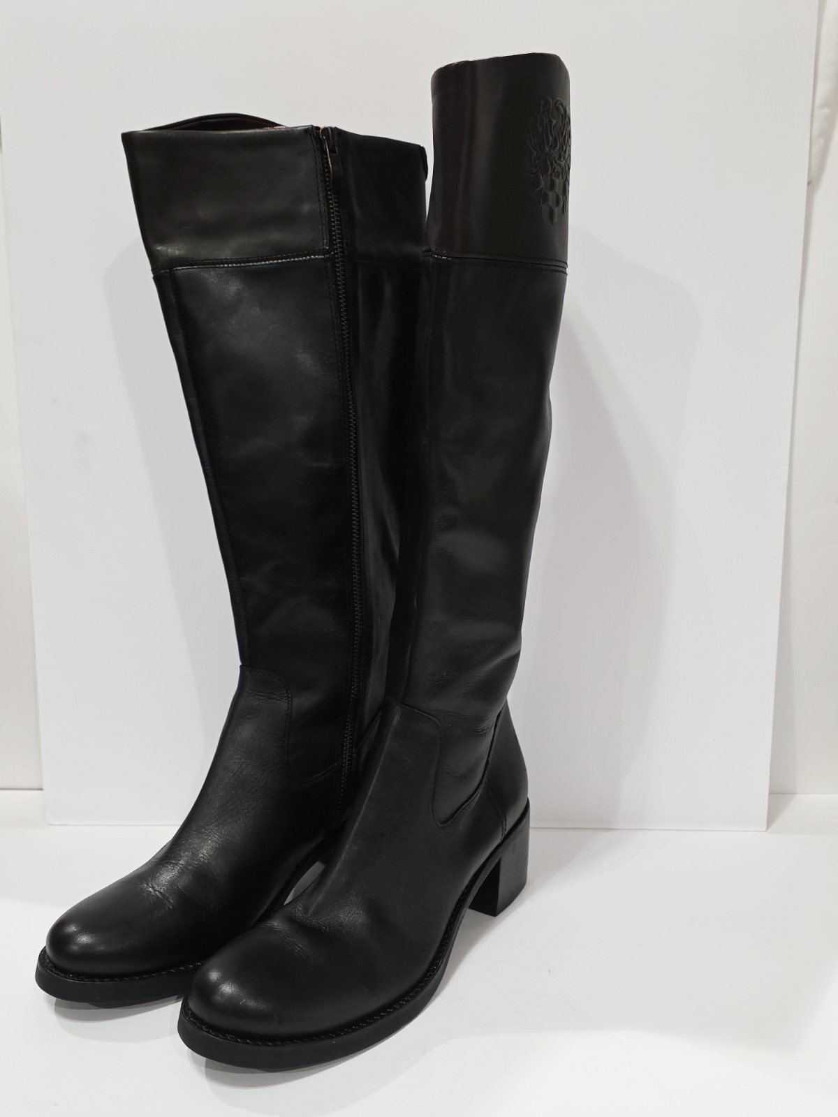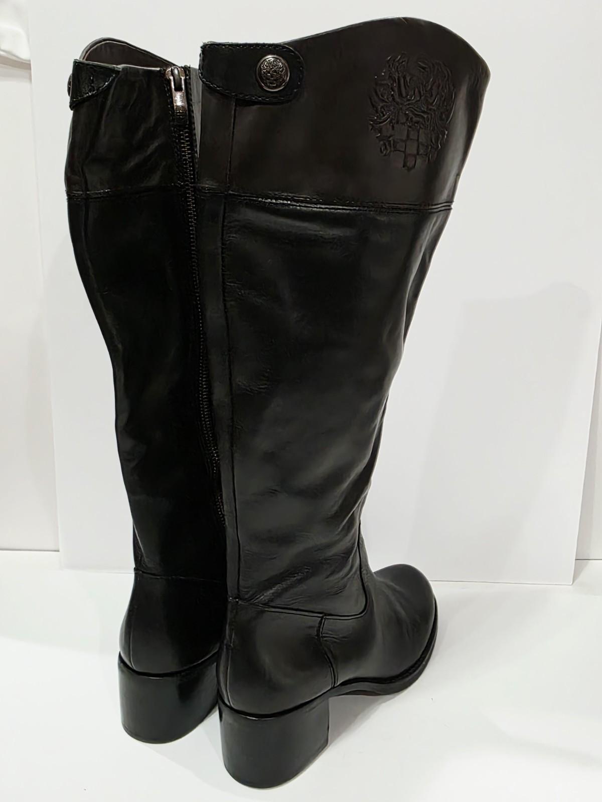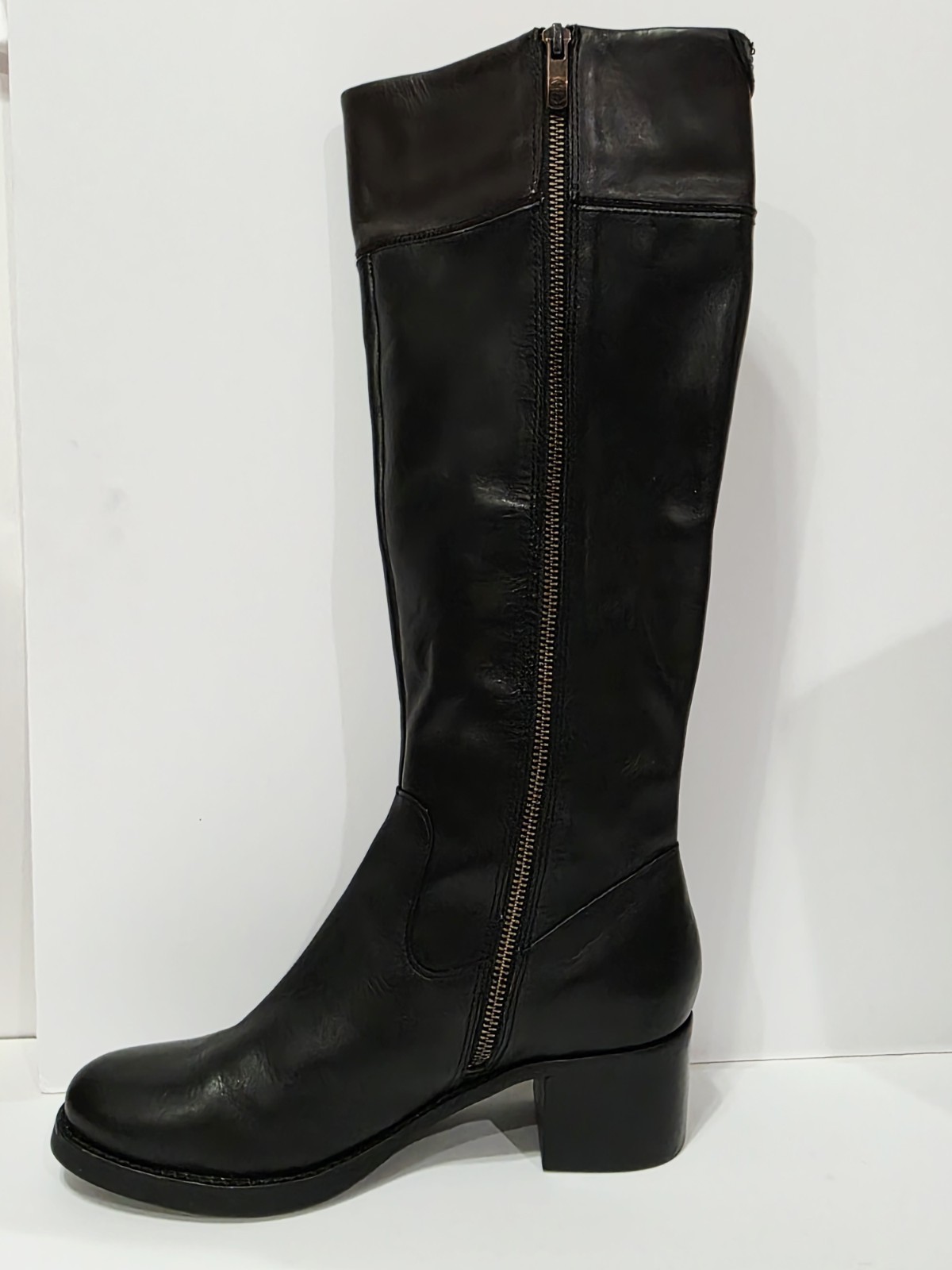 1 New *Has 2 Small Holes on Bottom from Display* Pair No Box By Vince Camuto VC-DUKE Black Brown Leather 2 Tone Boot Knee High Zipper EU 38 USA 8 B New! (Box #5)