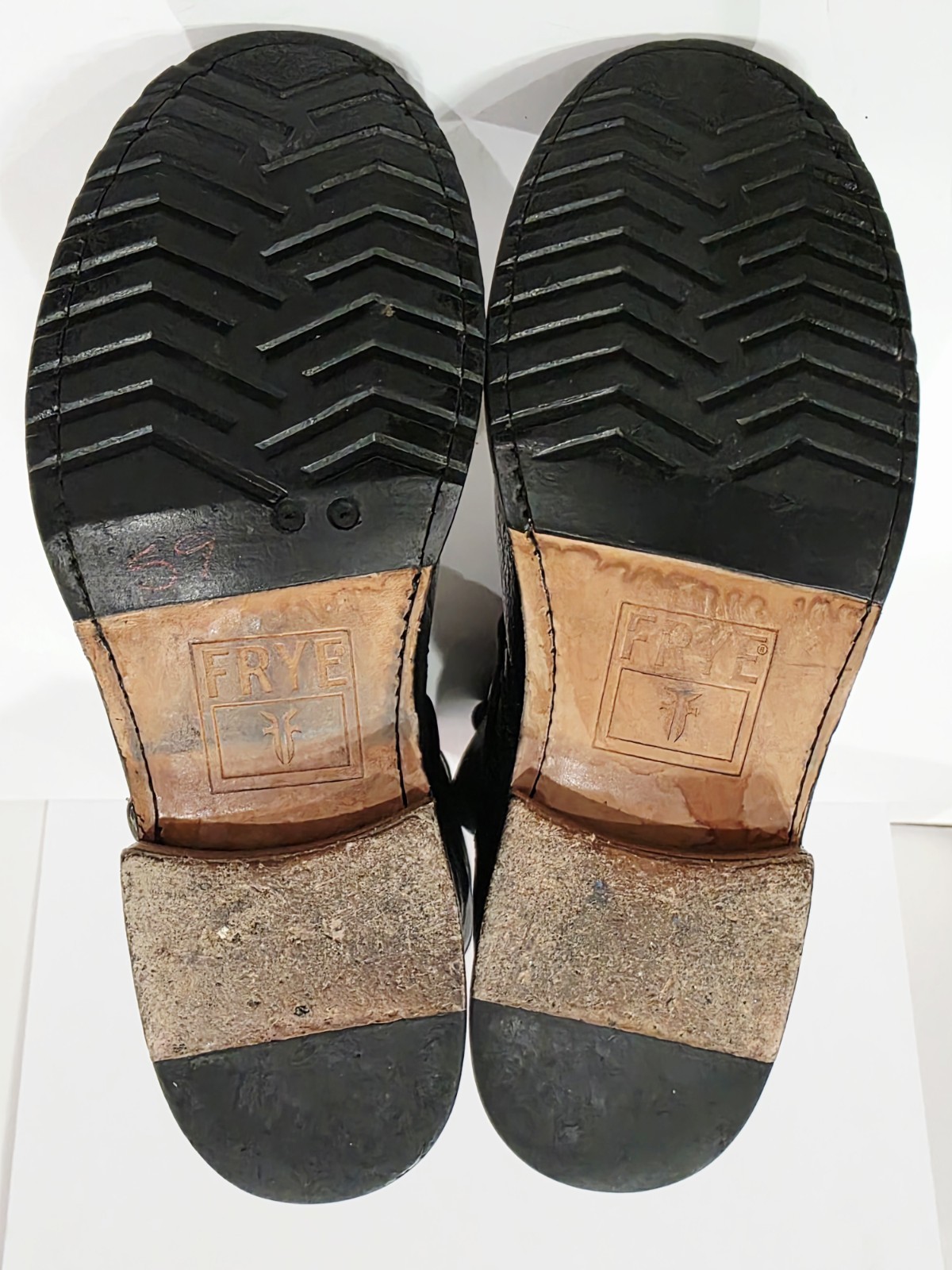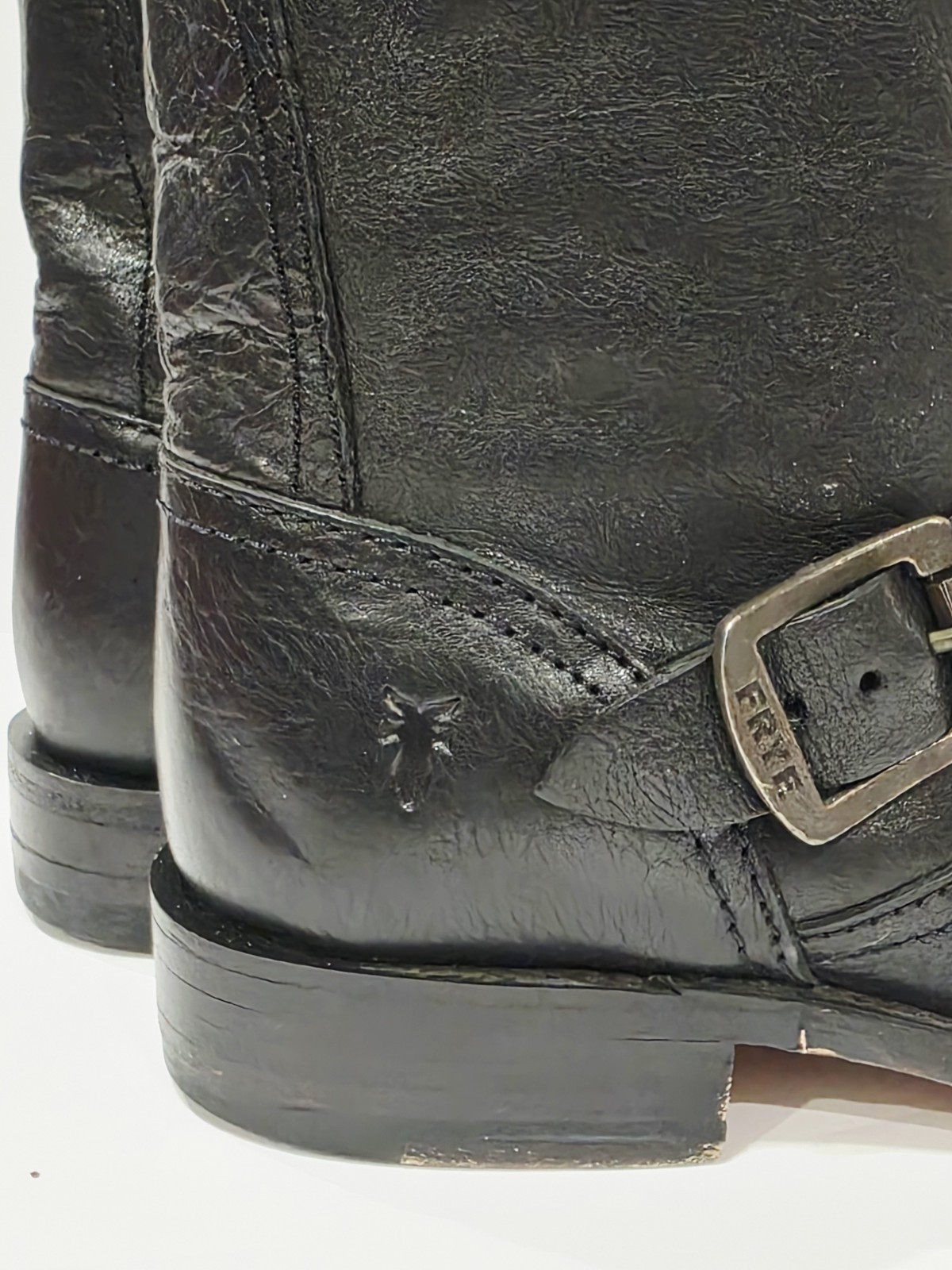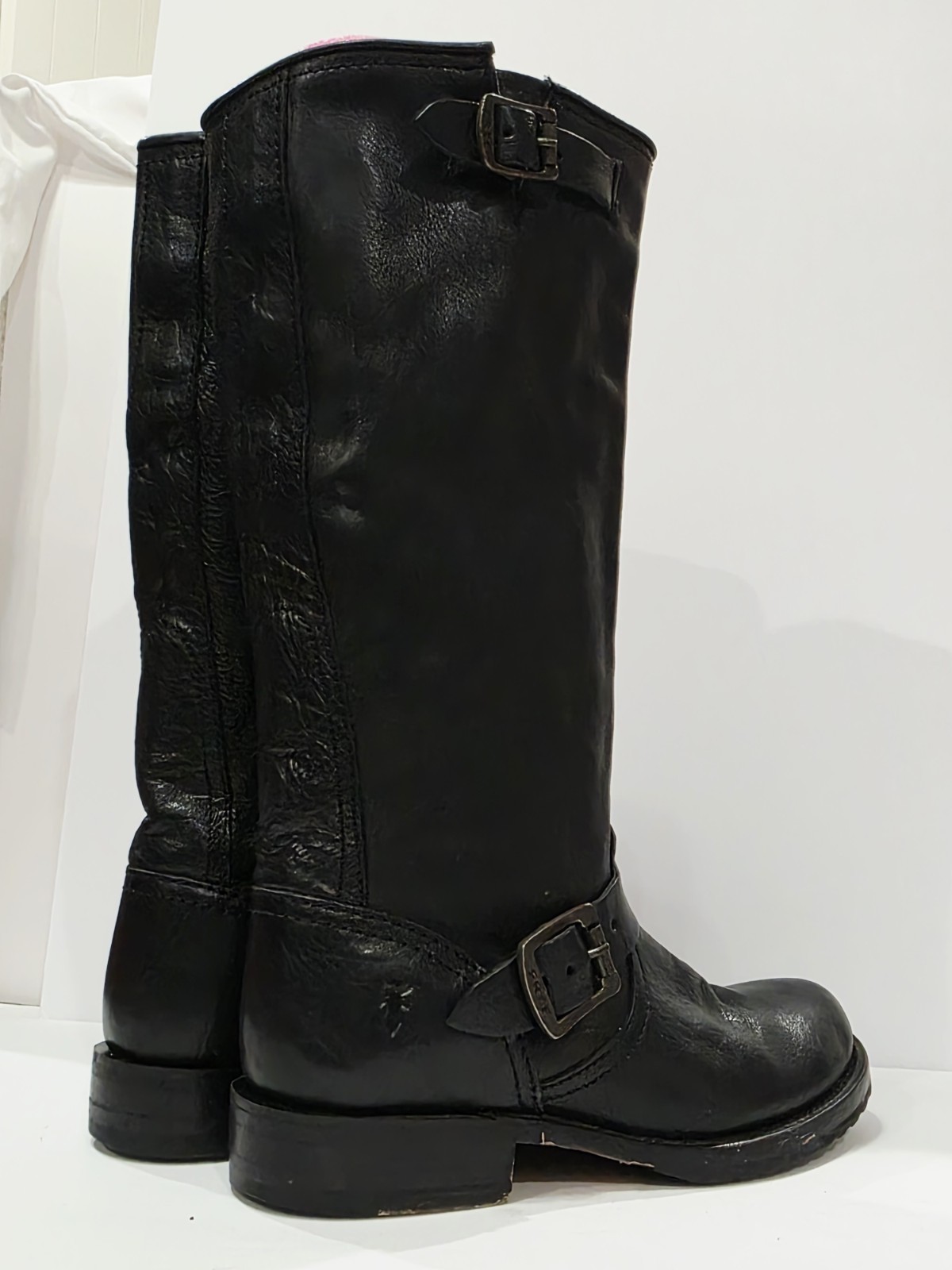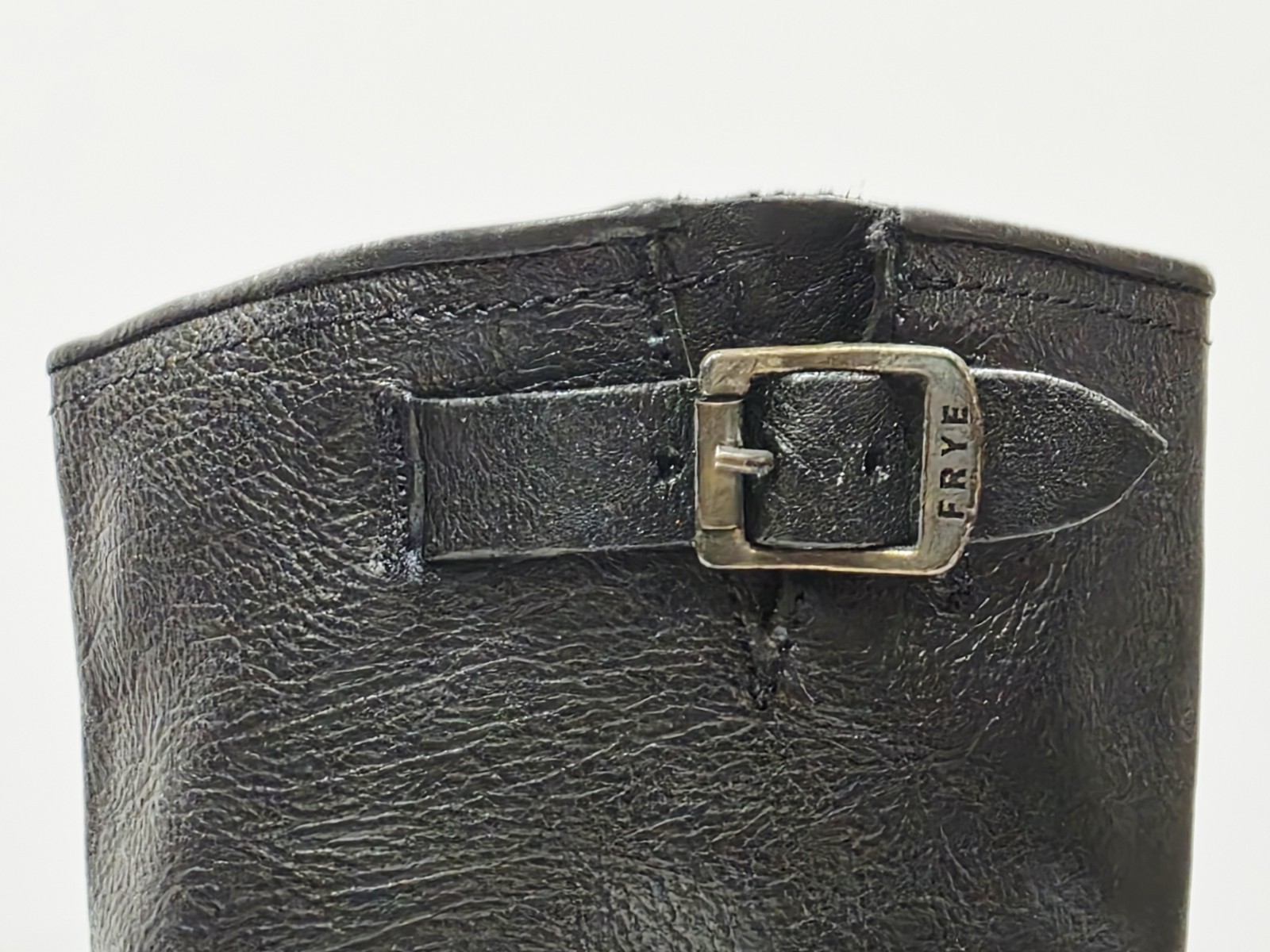 1 New *2 Small Holes on Bottom Sole from Display* Pair No Box By Frye VERONICA 77605 Black Leather Boot Tall Pull-On Riding Slouch Buckle Women 7.5 B! (Box #5)