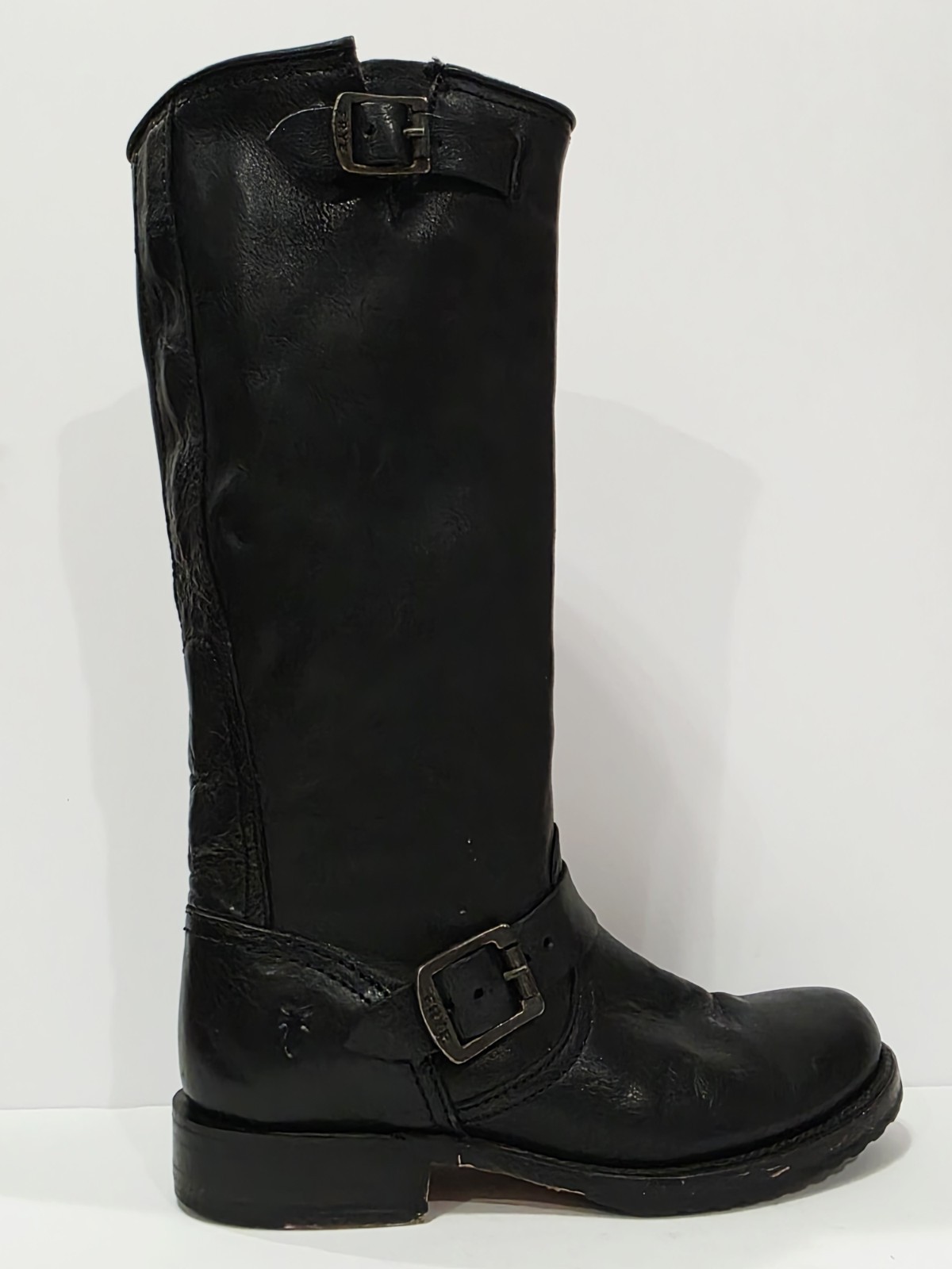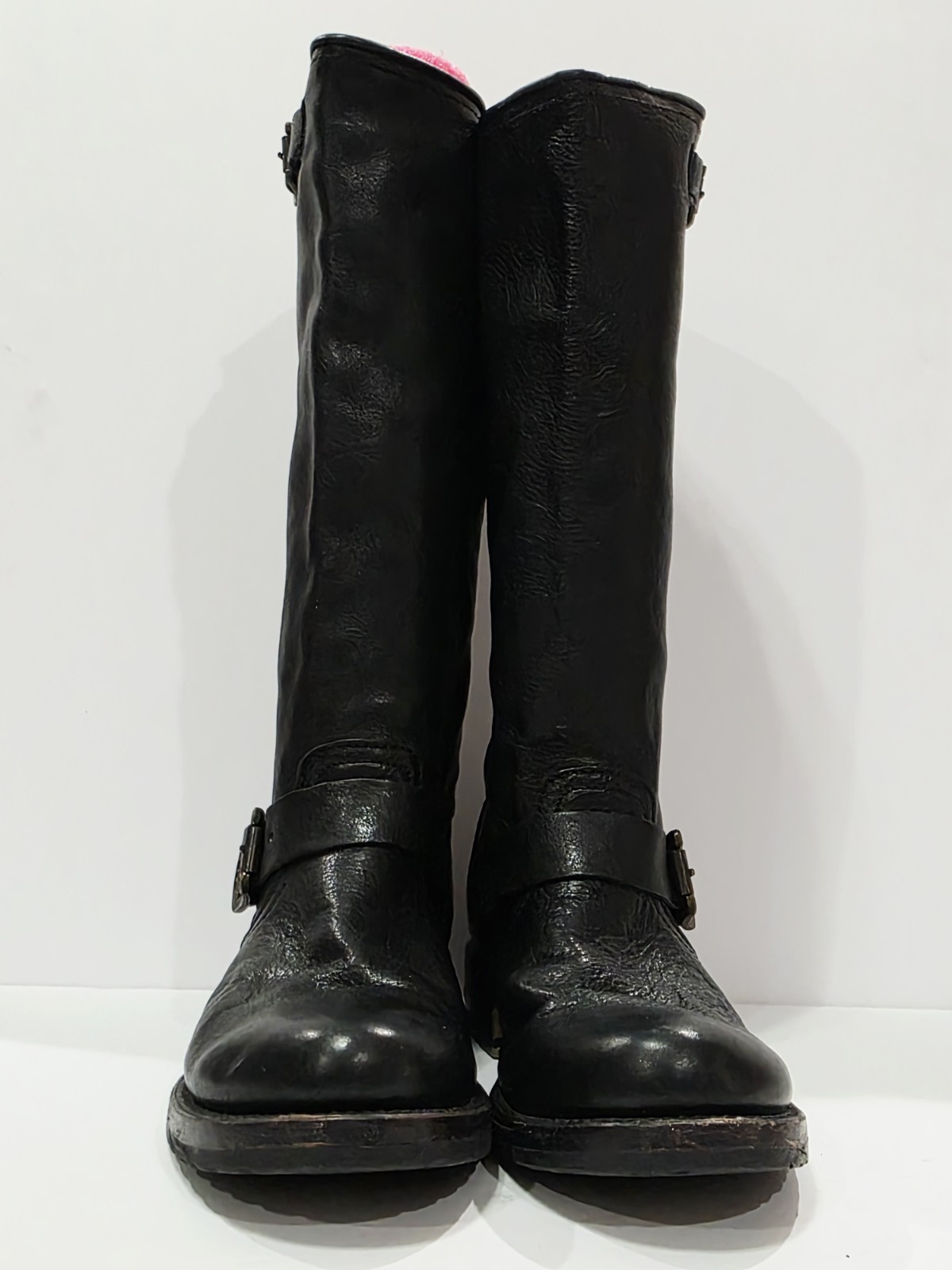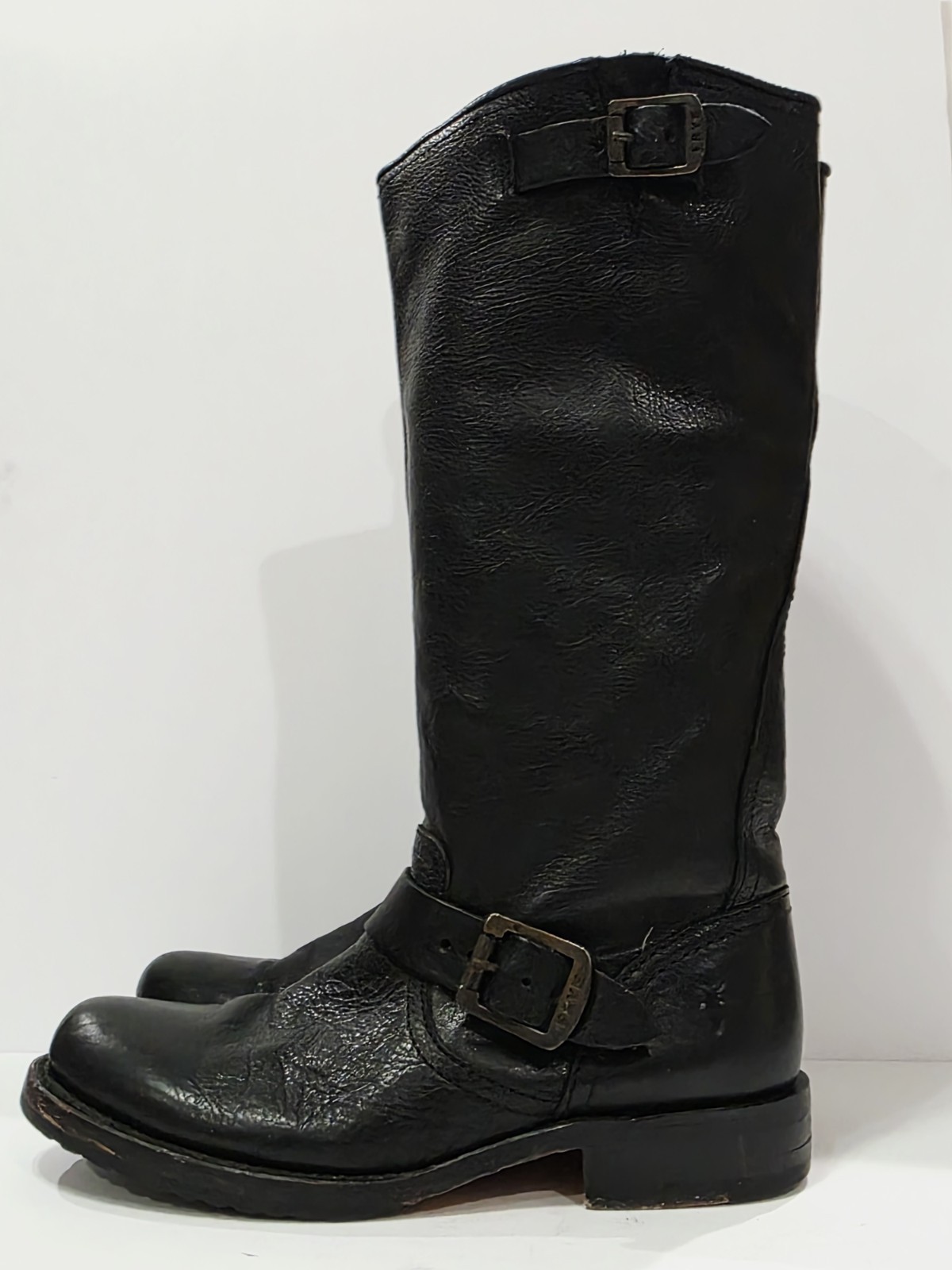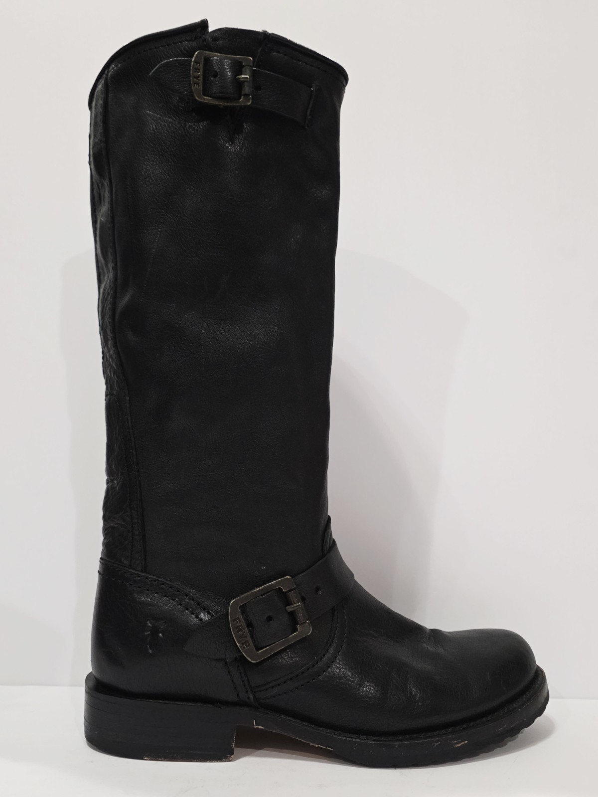Frye VERONICA 77605 Black Leather Boot Tall Pull Riding Slouch Buckle 7.5 B New