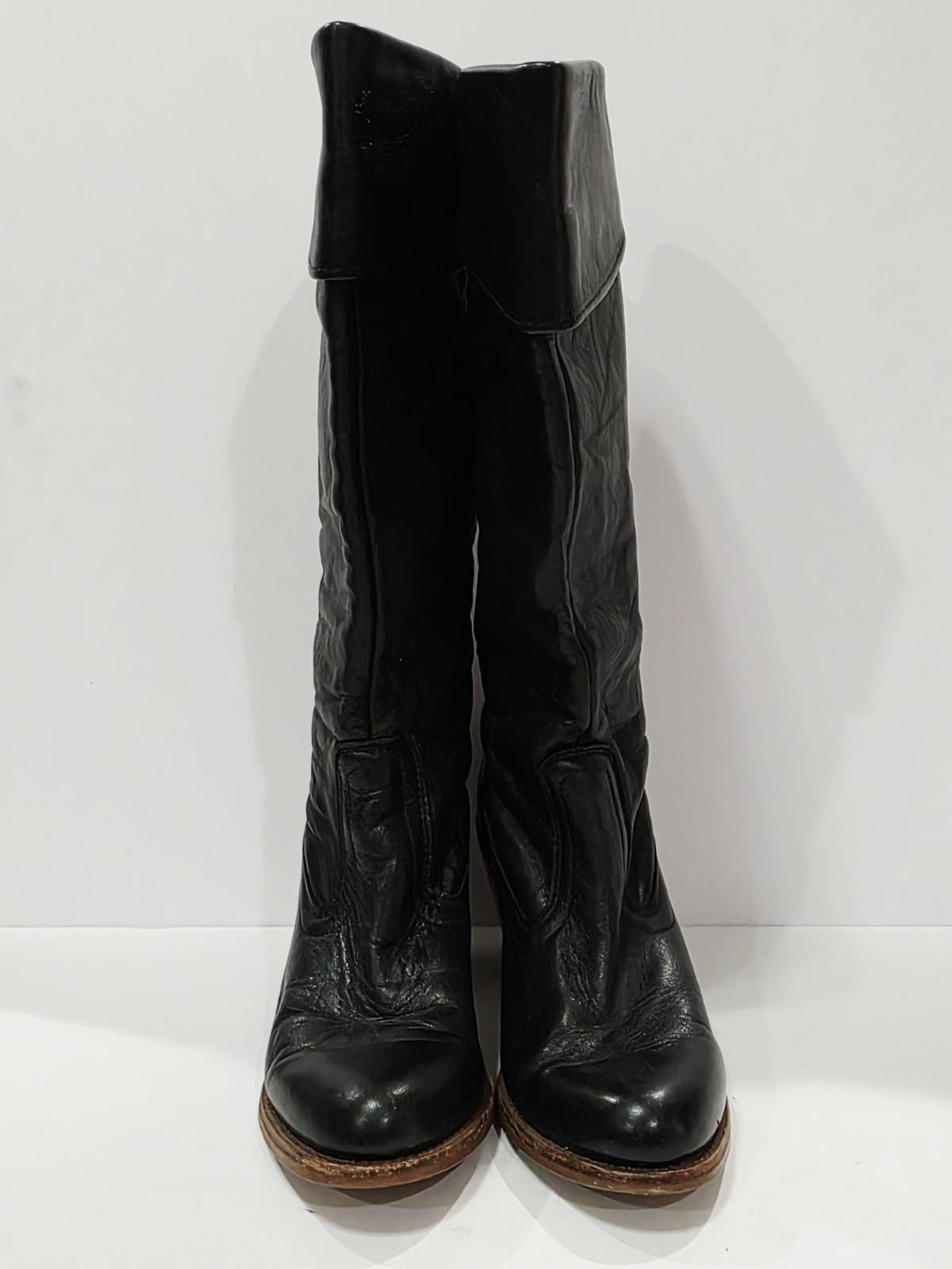 Dexter 708802 Black Leather Boot Mid-Calf Cuff Pull-On Vintage Riding 7 M Used