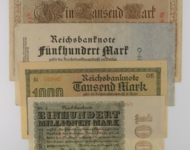 1910-1923 Allemagne 4-Notes Kit Empire 1000 République 500 1000 & 100 Million