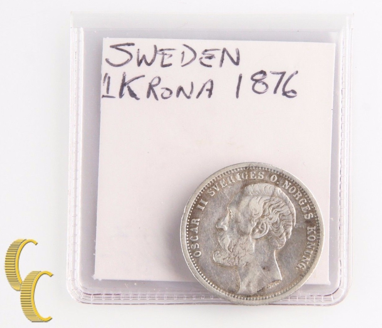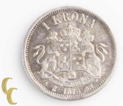 1876-St Sweden 1 Krona (tres fin +, VF +) Oscar II Silver Coin un 1kr KM-741