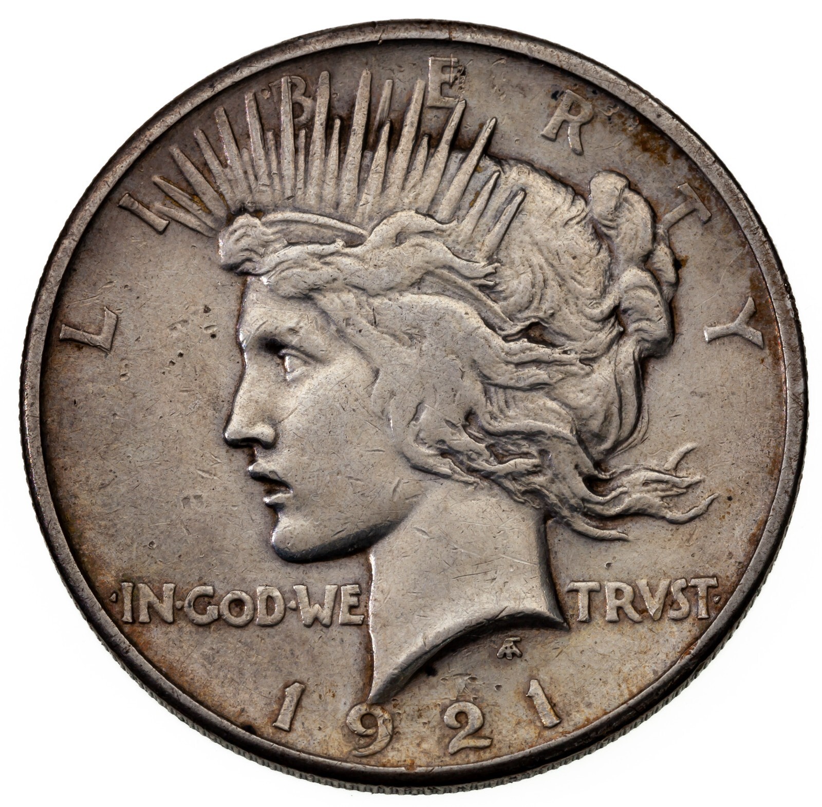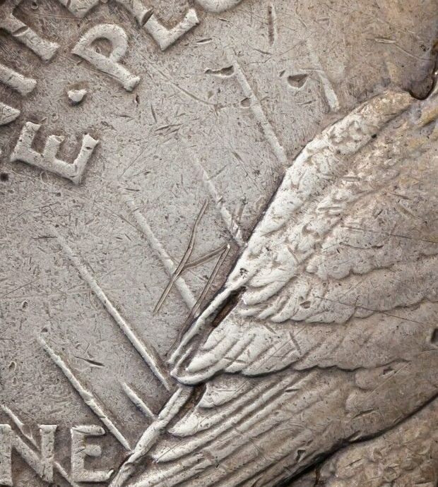 1921 Argent Paix Dollar En Très Fin VF État, Grafitti Sur Marche Arrière