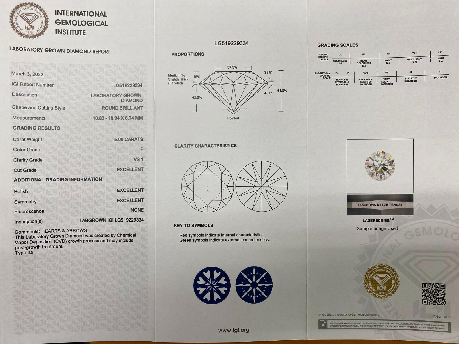 § INSCRIPTION (S): LABGROWN IGI LG591229334