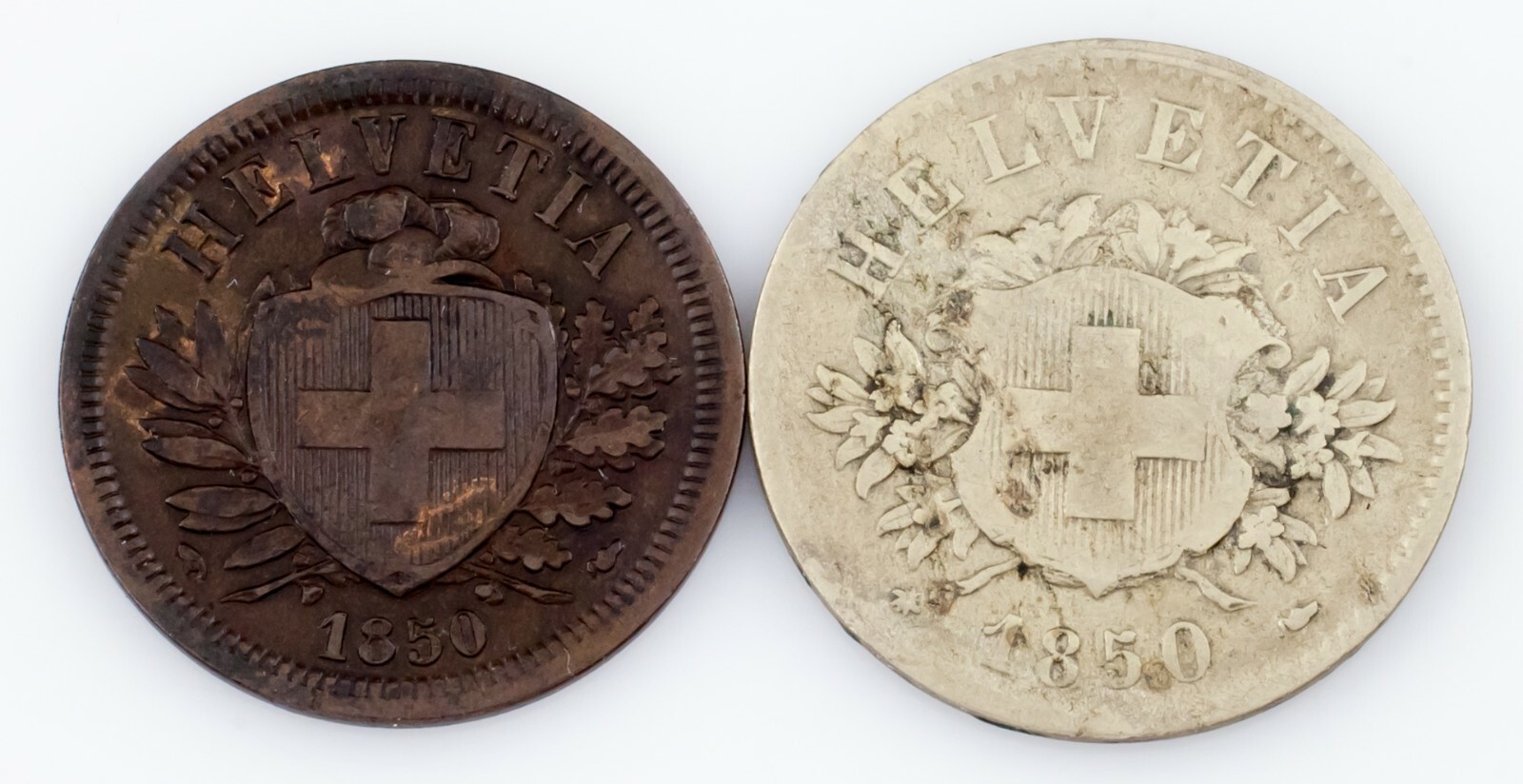 1850 Suisse Lot Coin (2PCS) 2-20 RAPPEN KM # 4.1, 7