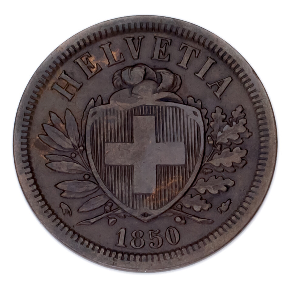 1850-A Swiss - 2 Rappen, extra fin, km # 4.1
