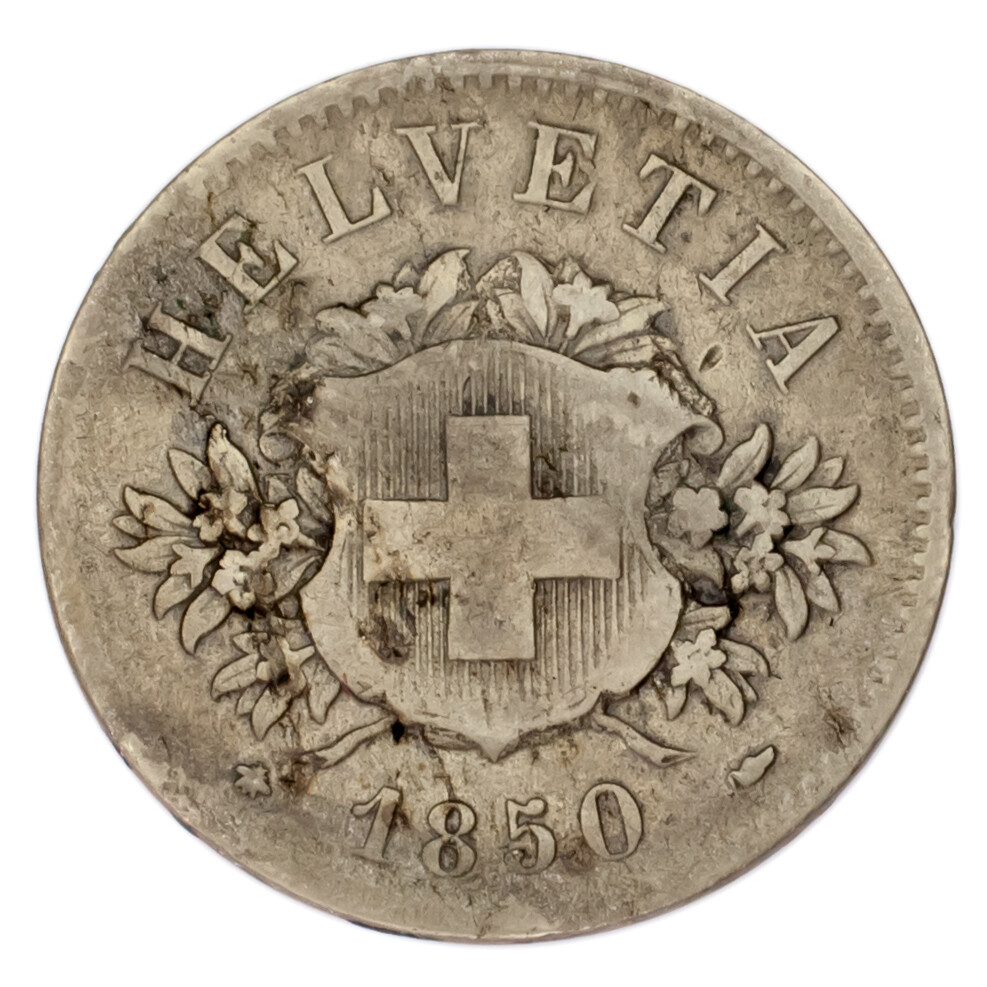 1850-BB Swiss - 20 Rappen, tres fin, km # 7