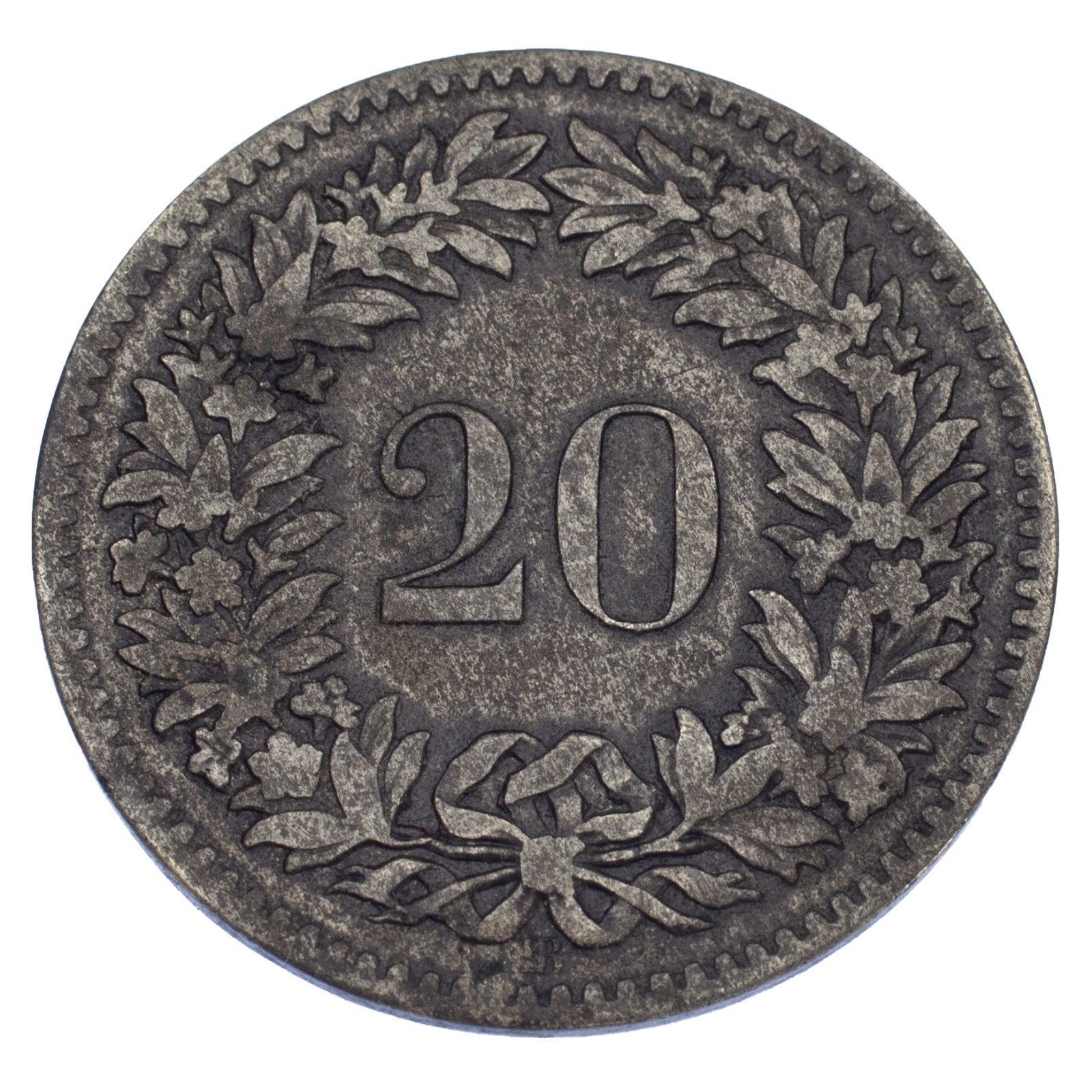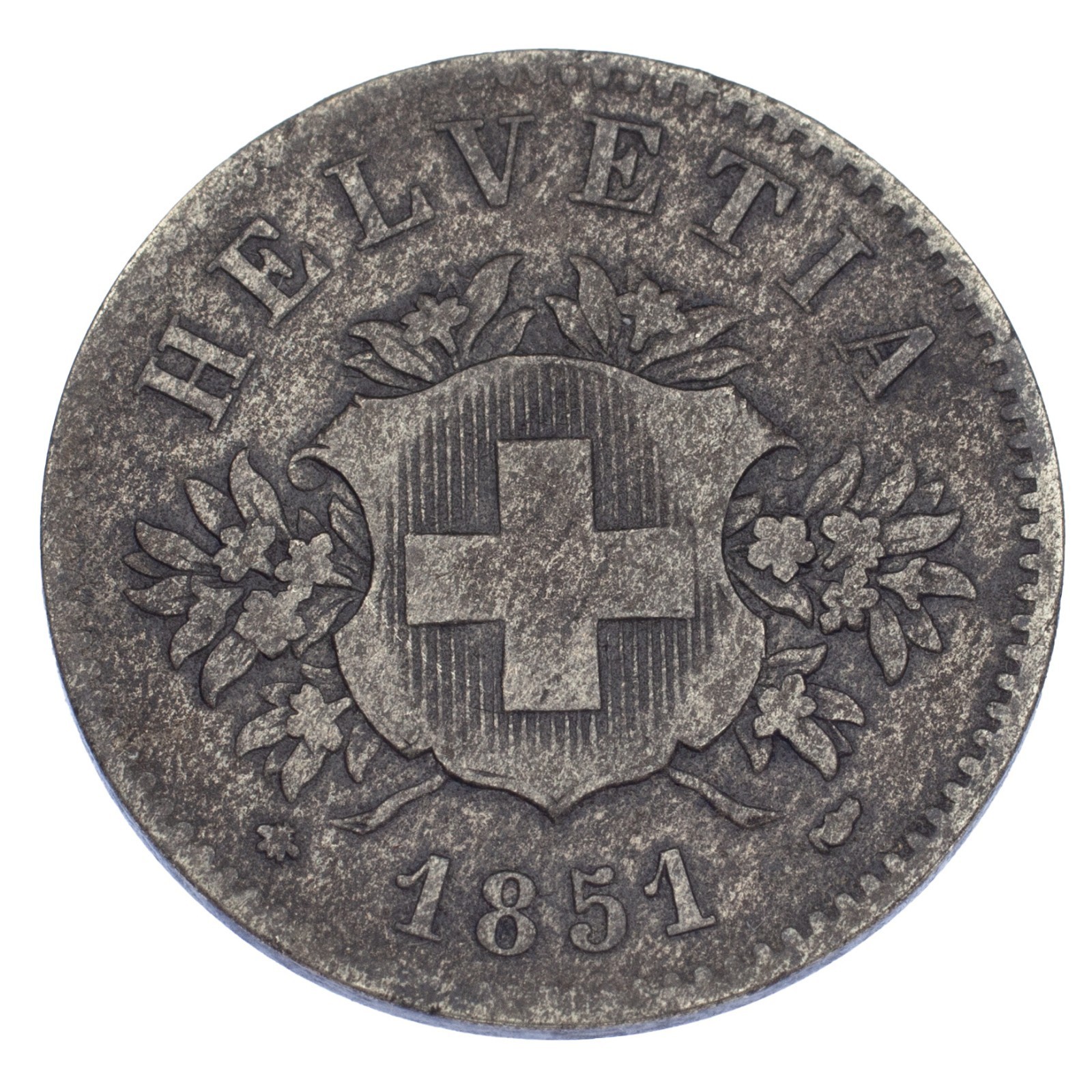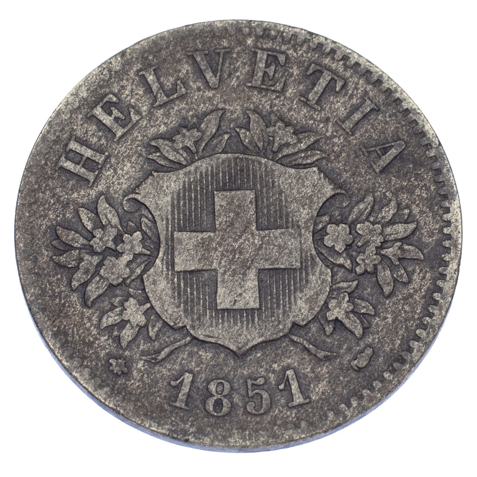 1851-BB Suisse 20 RAPPEN BILLON KM # 7 VF Condition