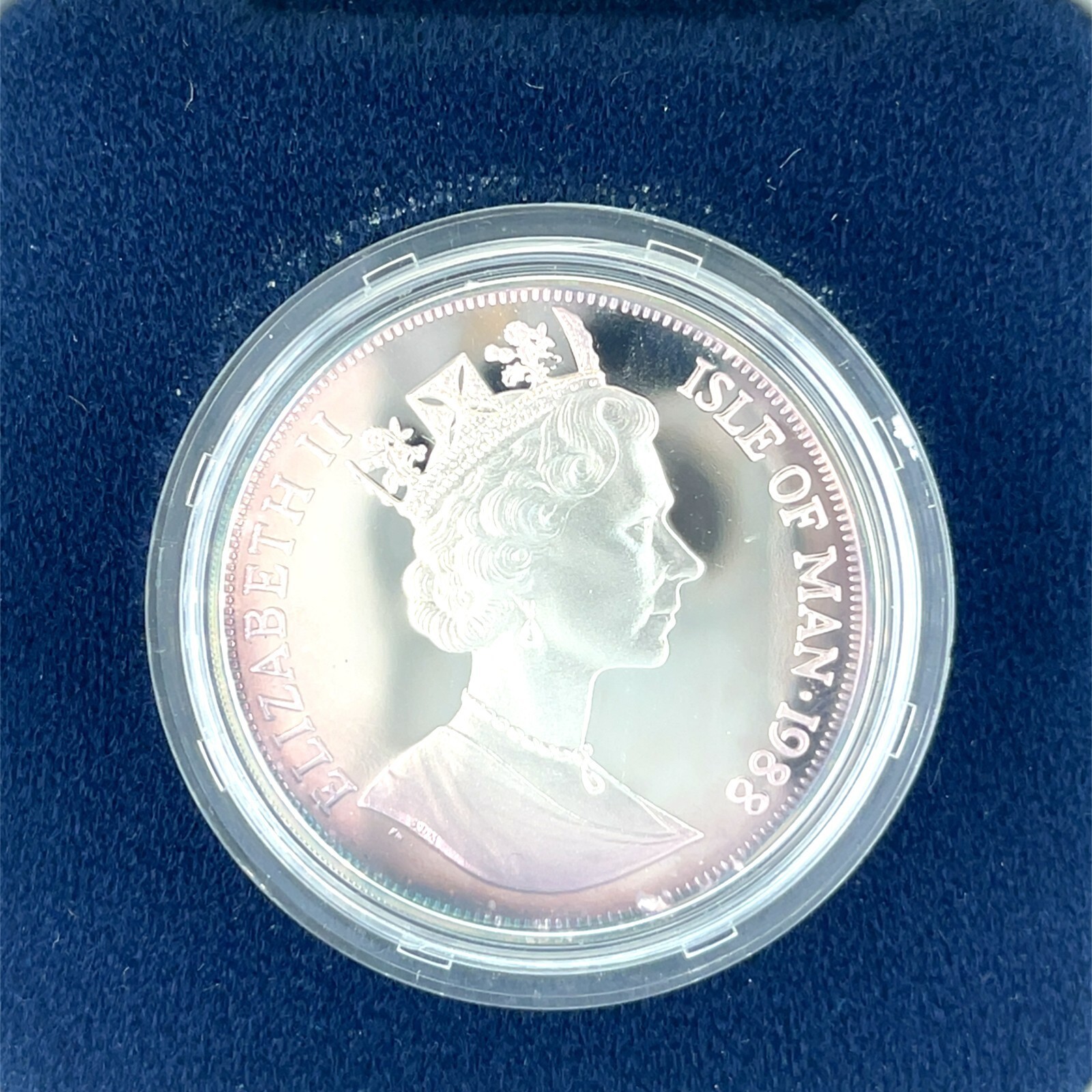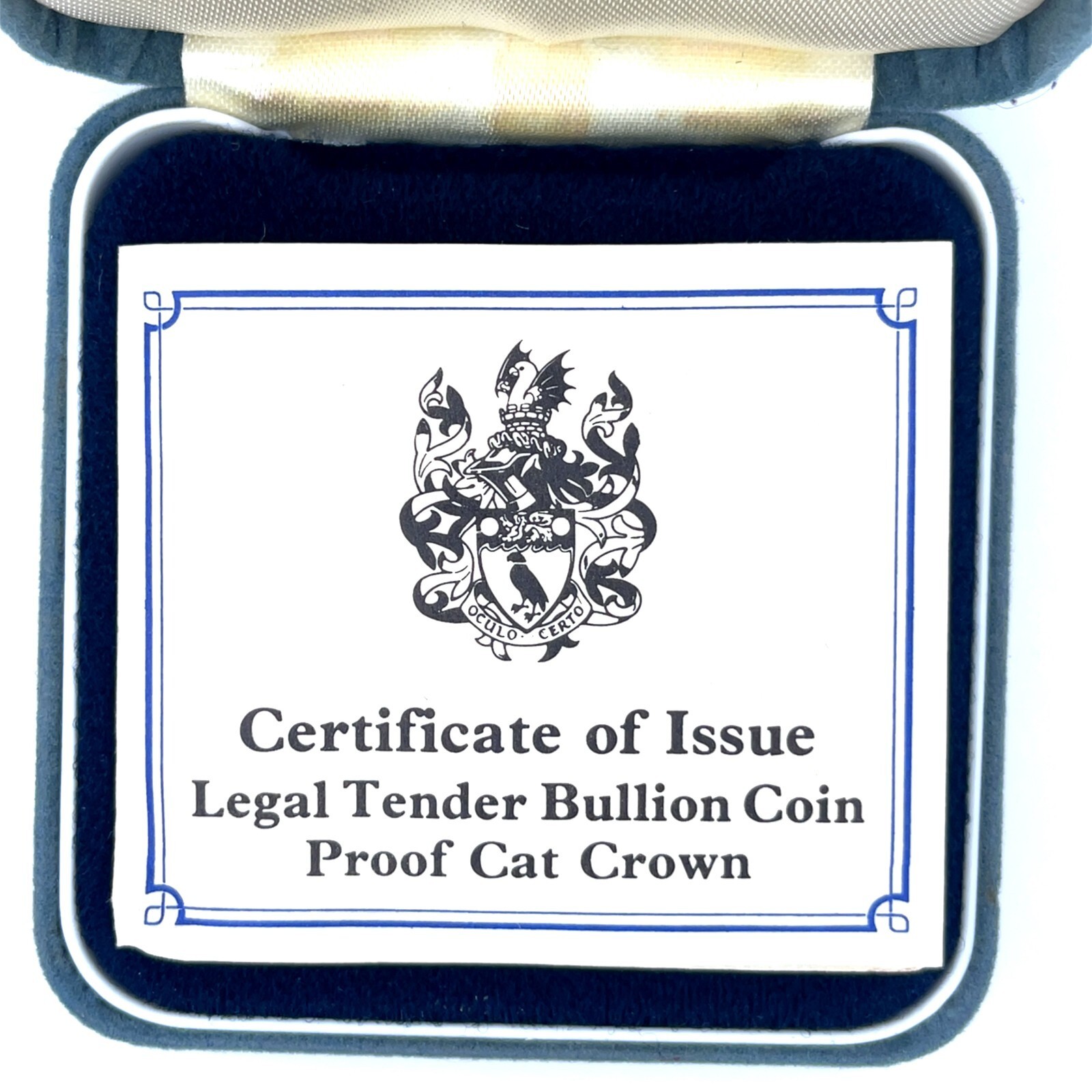 1988 Argento 1 oz Isola di Man Manx Cat Crown Proof con scatola e certificazione di emissione