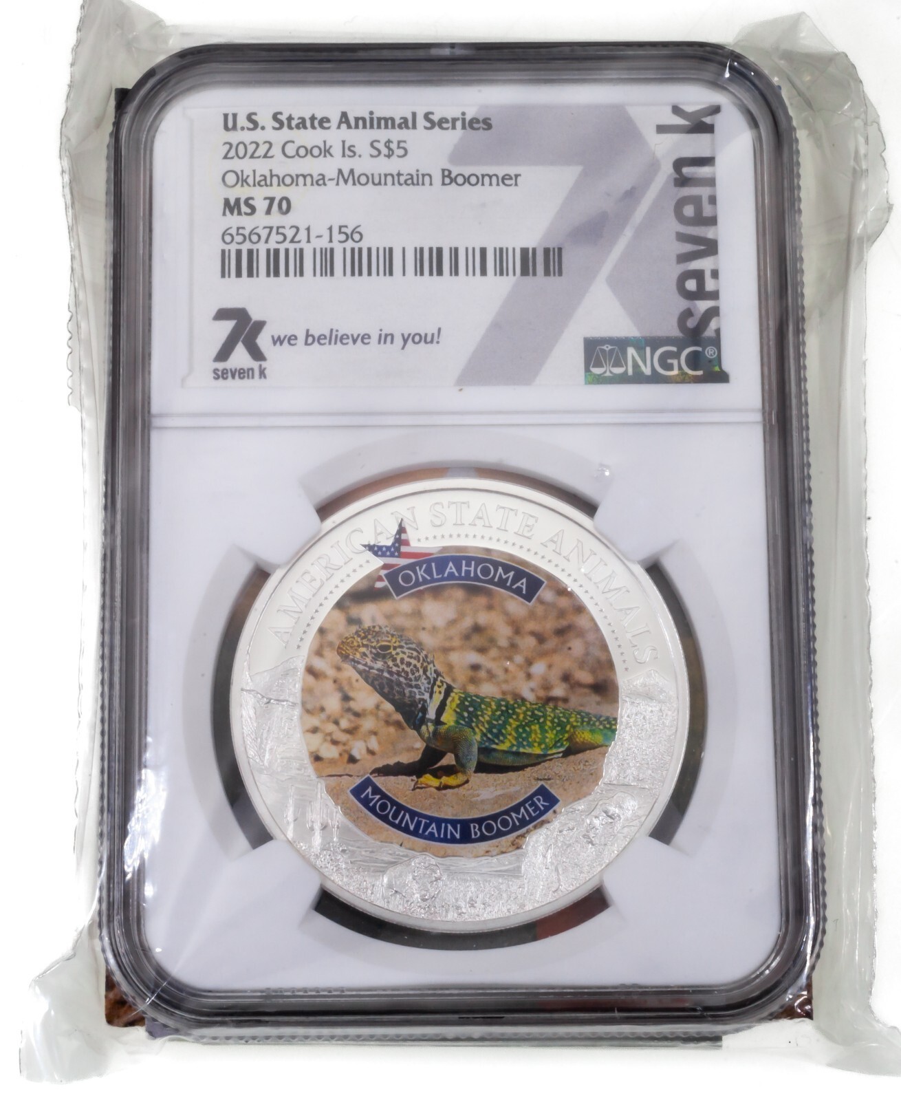 2022 Isole Cook S$5 Serie Animali Oklahoma Valutato Da NGC Come MS-70