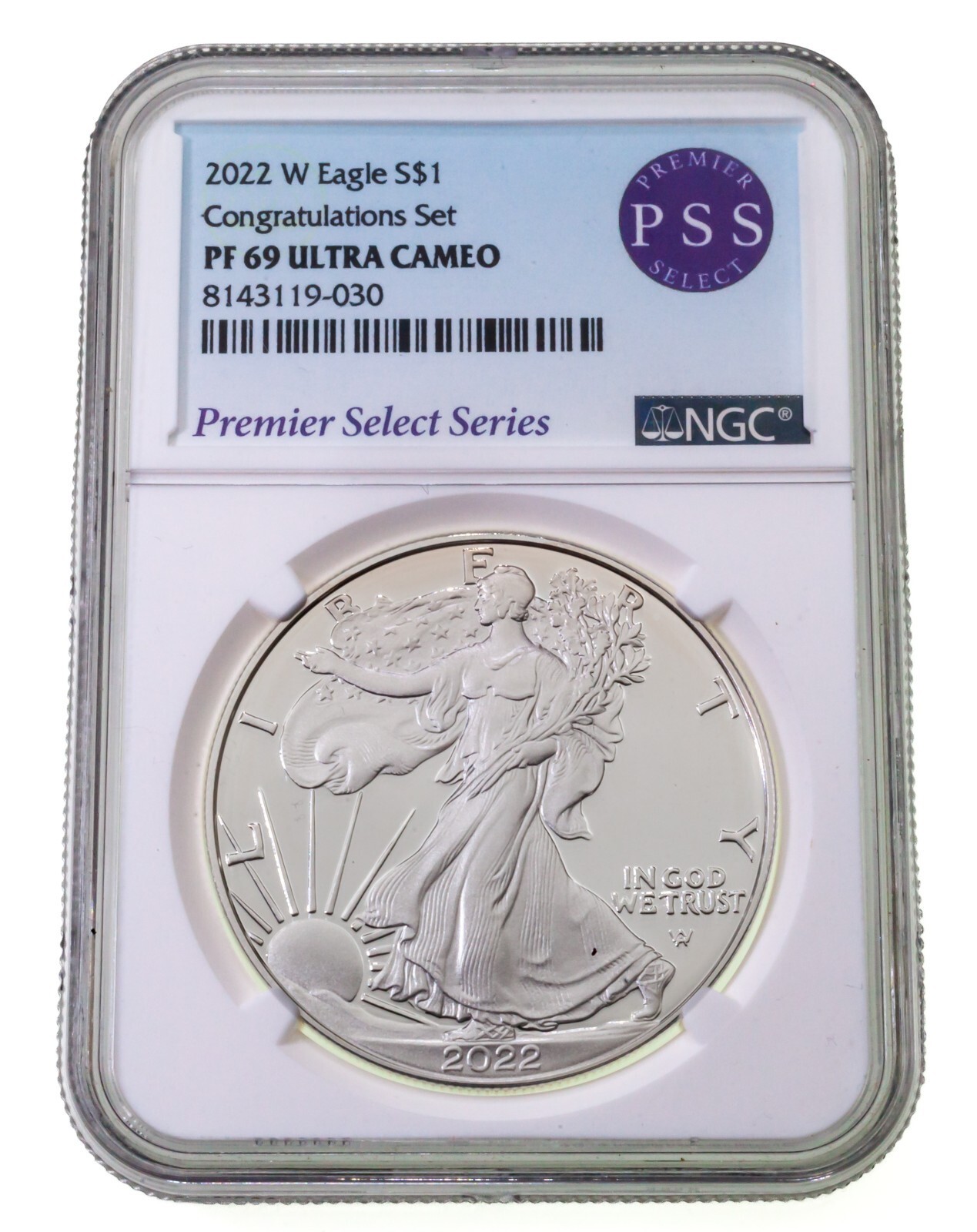 Set Di Congratulazioni 2022-W $1 Silver American Eagle NGC PF69 UCam