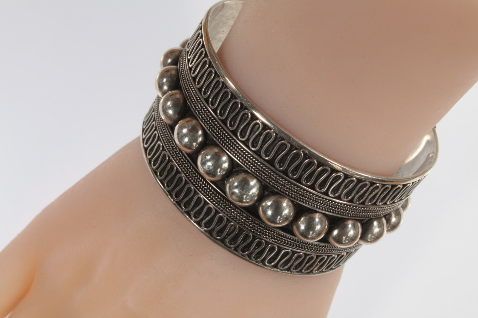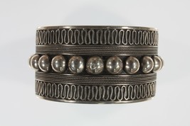 Handmade Wide Sukawati Lace w/Beads Sterling Silver Cuff Bracelet! 55.6g