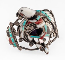 Vintage Zuni John Lucio Eagle Dancer Sterling Silver Inlay Cuff Bracelet