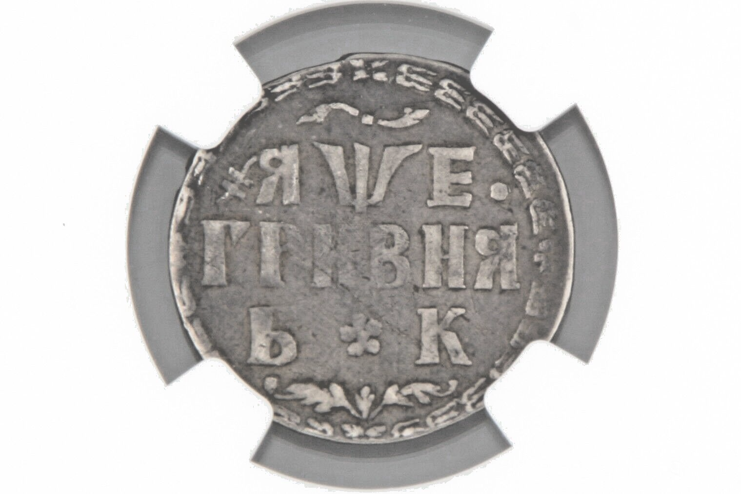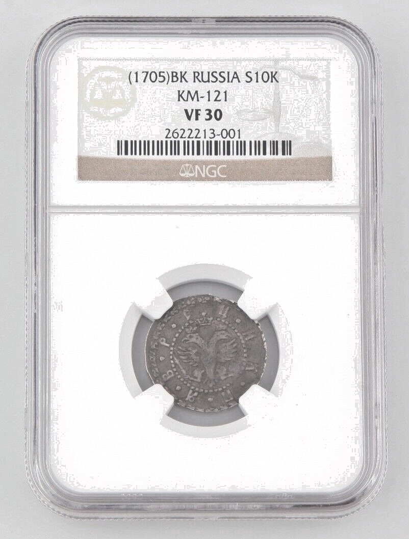 (1705)BK Russia 10 Kopek Silver Coin VF-30 NGC Slabbed Peter the Great KM#121