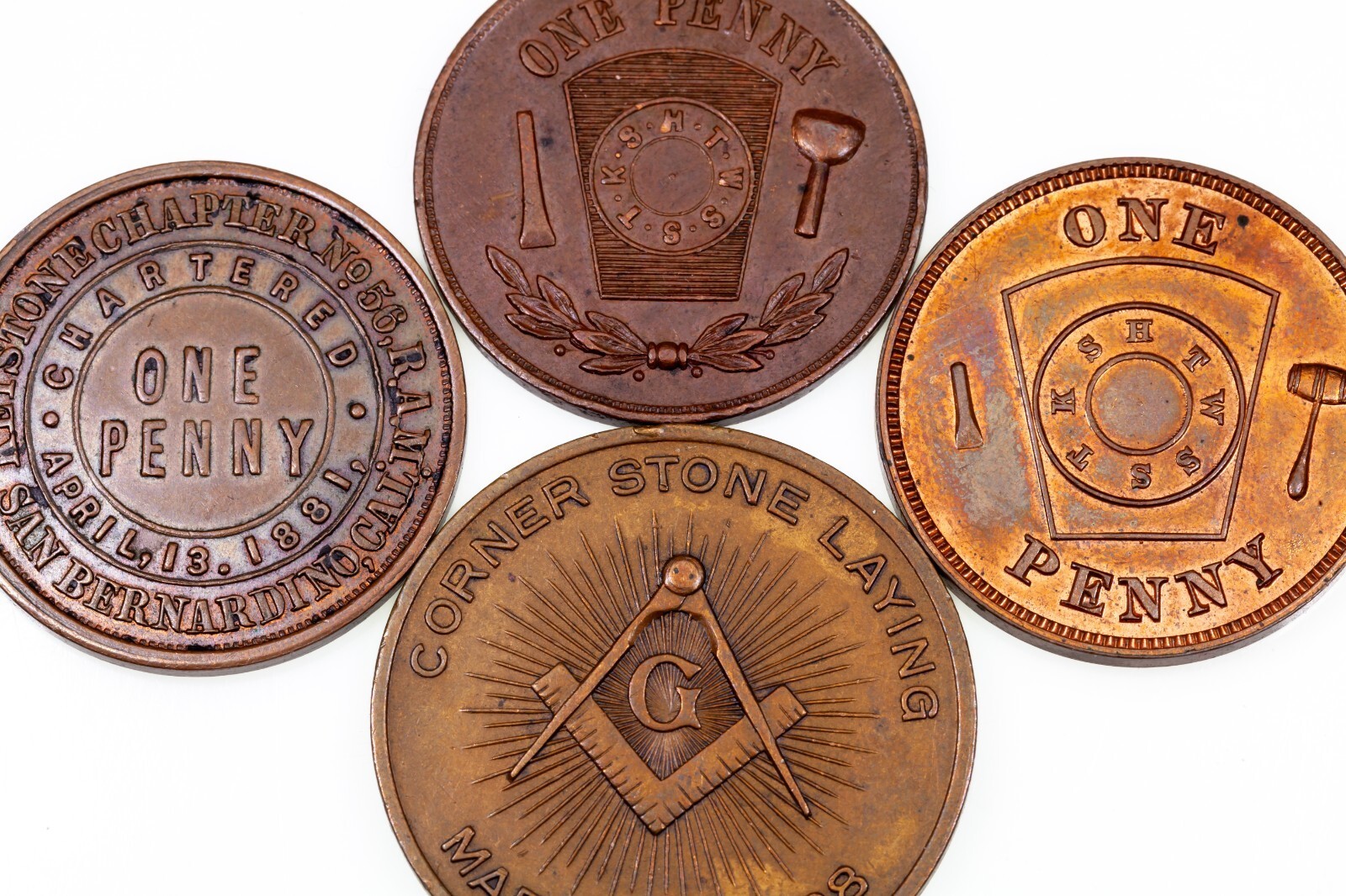 Masonic One Penny Lot de 4 fichas, Midway, Keystone, Garfield
