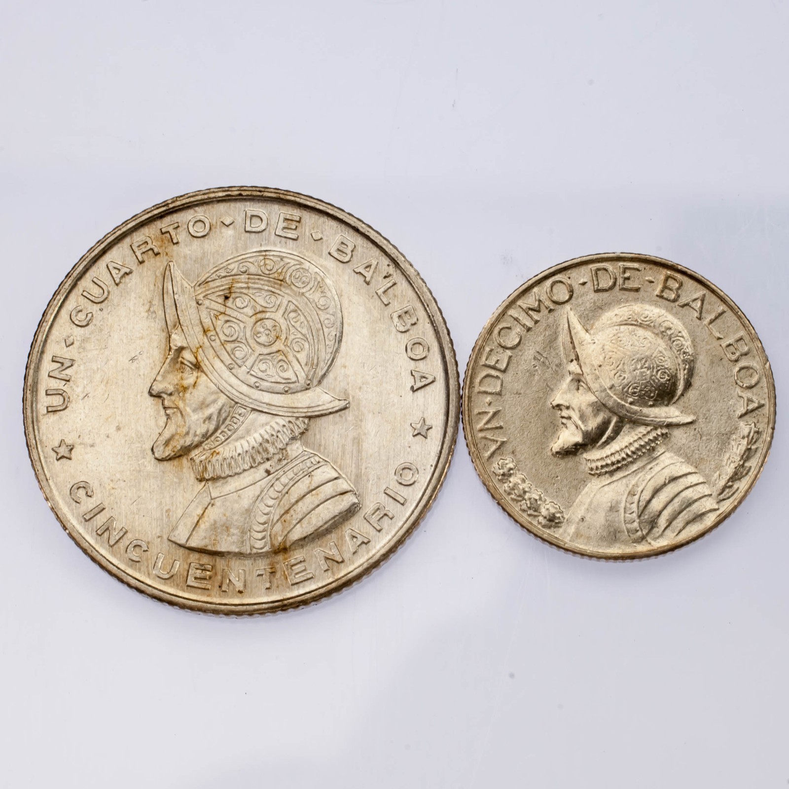 Panama 2 Coin Lot 1947 1/10 Balboa KM #12.1953 1/4 Balboa km #19 BU
